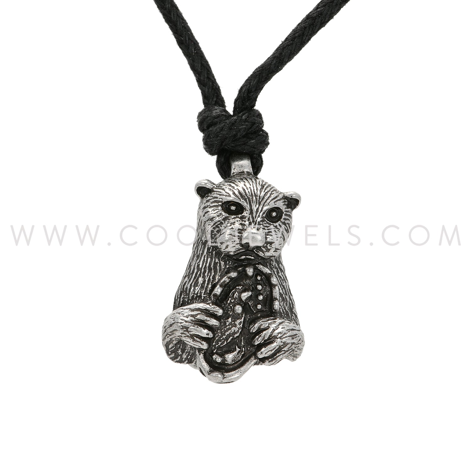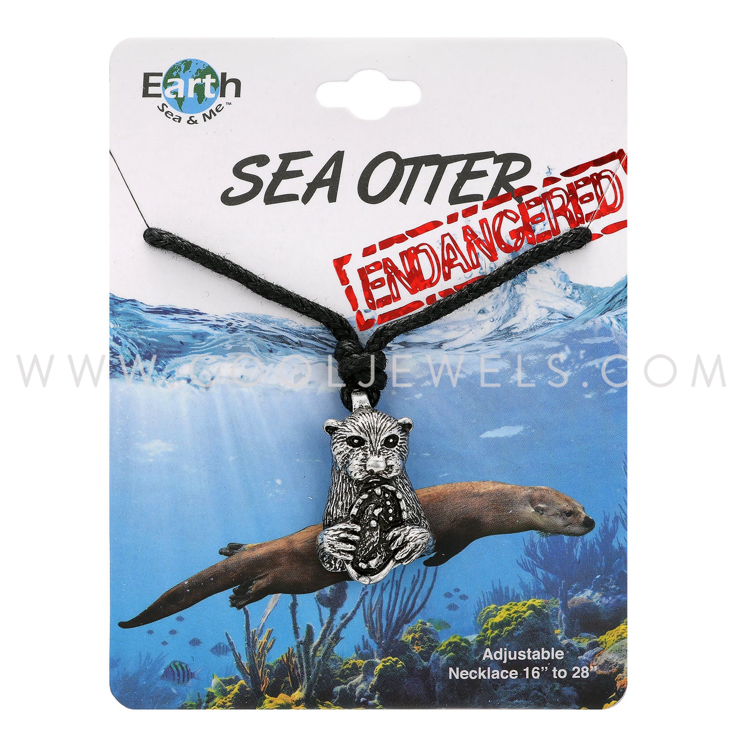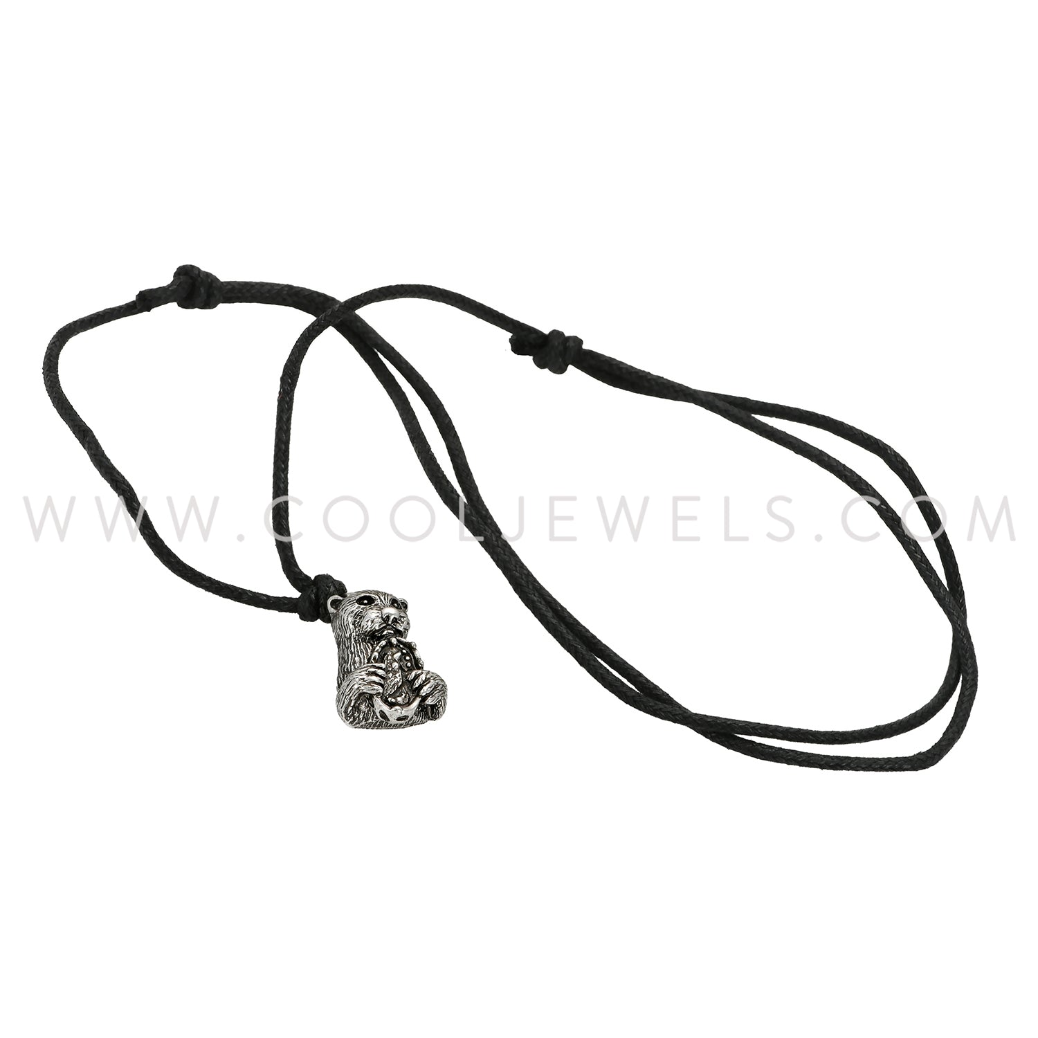 These awesome Earth, Sea & Me Sea Otter Necklace features an antiqued pewter sea potter and abalone shell on a black slider cord necklace.