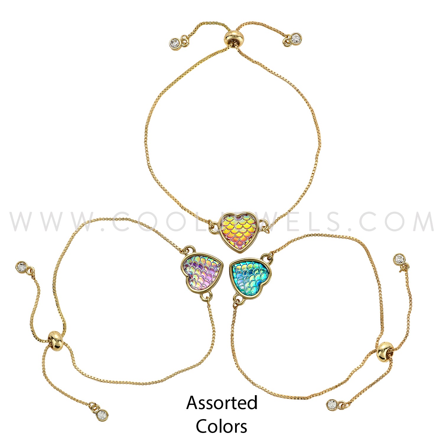 Assorted Heart Shaped Mermaid Scale Pendant Bracelet/Anklet