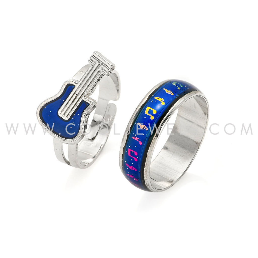 (SET OF 2) MOOD MUSIC NOTE BAND & GUITAR RING - CARDED