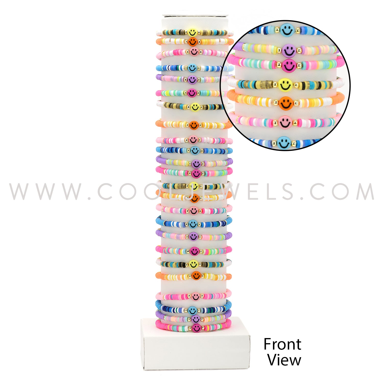 WHITE TUBE DISPLAY WITH 24PCS MULTI-COLORED FIMO STRETCH BR WITH COLORED HAPPY FACE