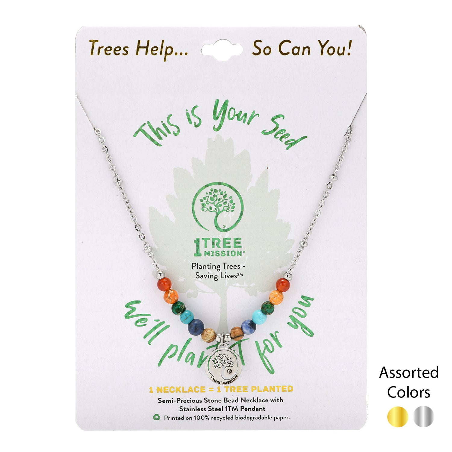 1 TREE MISSION® STAINLESS STEEL NECKLACE WITH COLORED BEADS (ASPEN TREE)