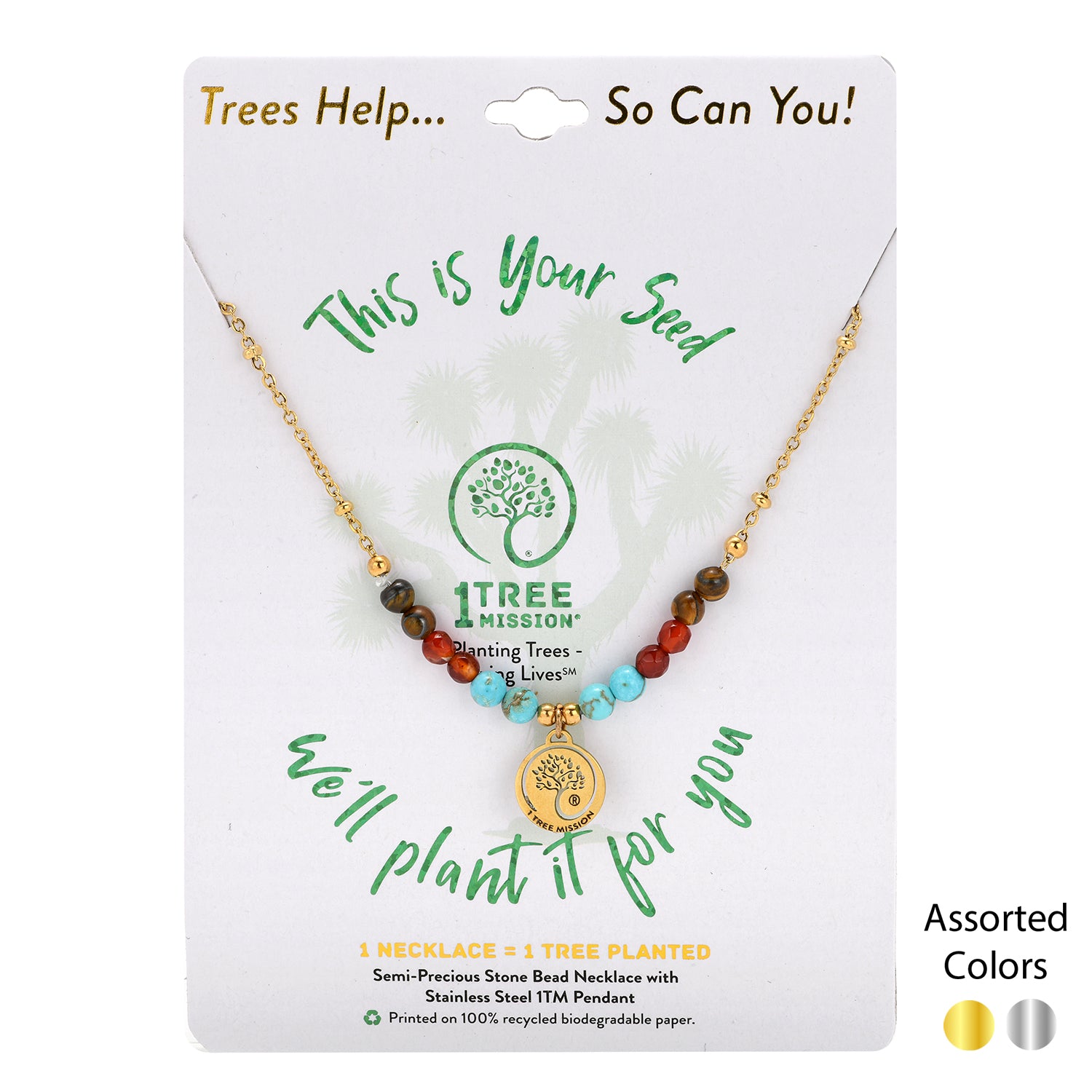 1 TREE MISSION® STAINLESS STEEL NECKLACE WITH COLORED BEADS (JOSHUA TREE)
