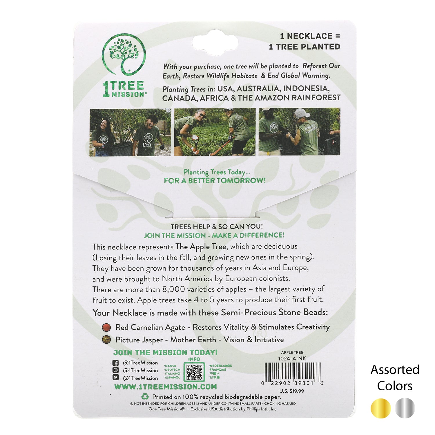 1 TREE MISSION® STAINLESS STEEL NECKLACE WITH COLORED BEADS (APPLE TREE)
