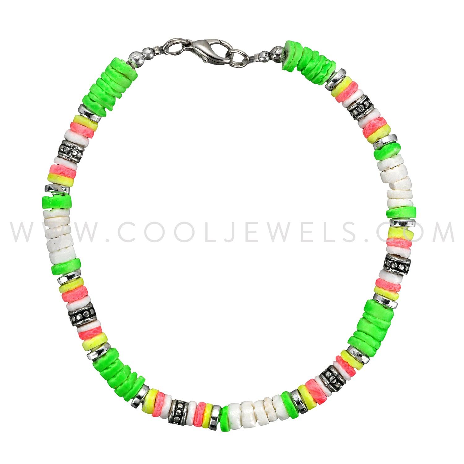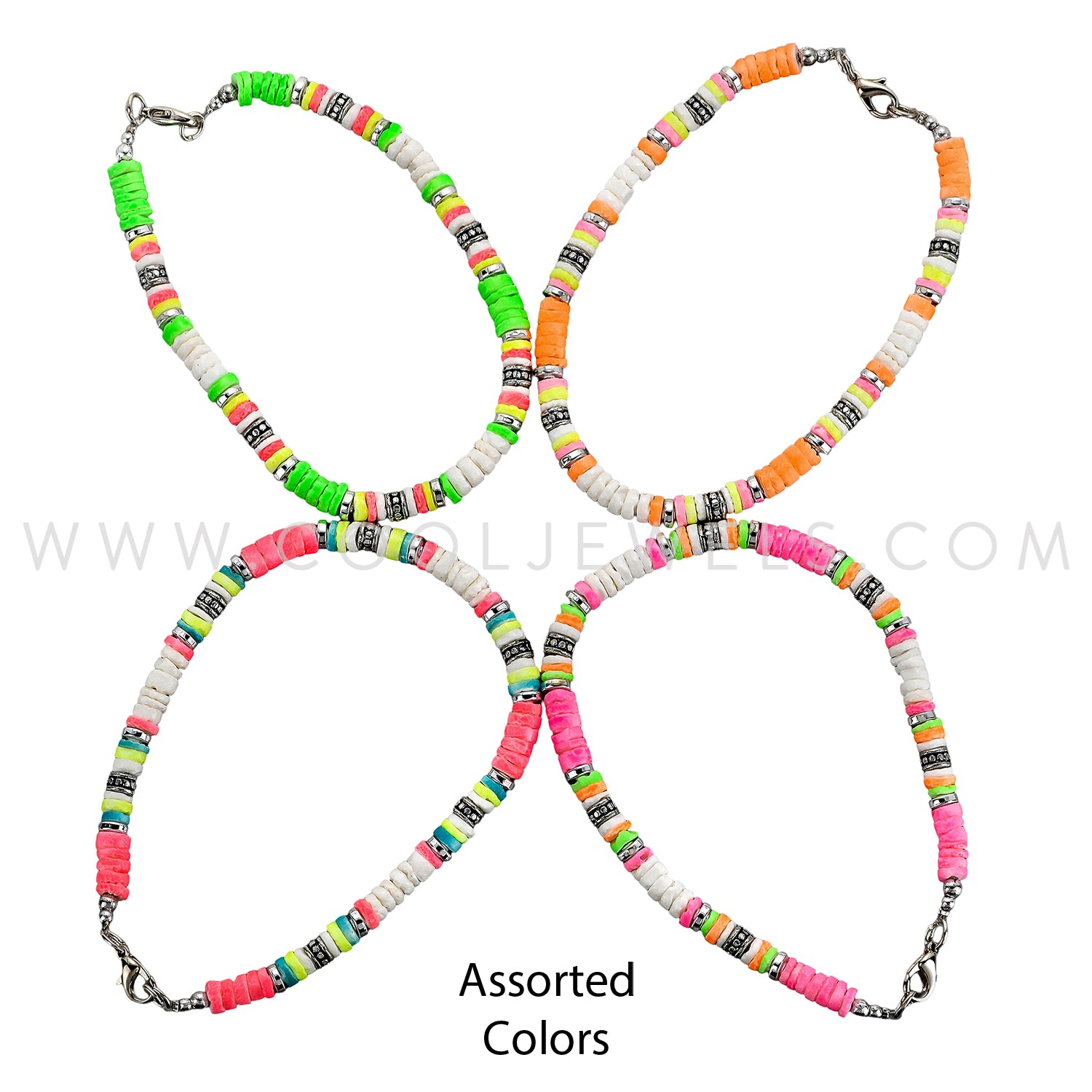 NEON SHELL WITH COCO & SILVER BEADED ANKLET - ASSORTED