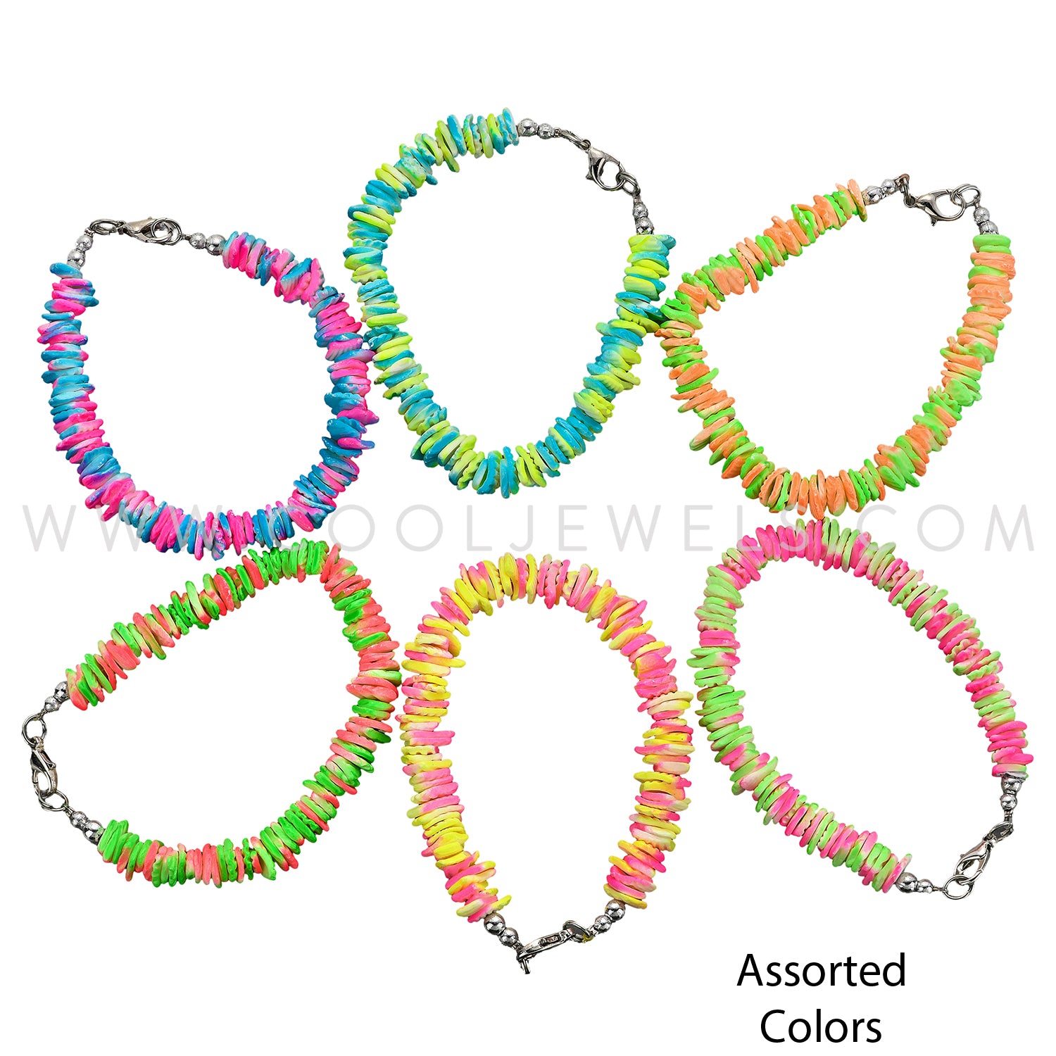 These Two Toned Neon Shell Bracelets come in a variety of fun colors.