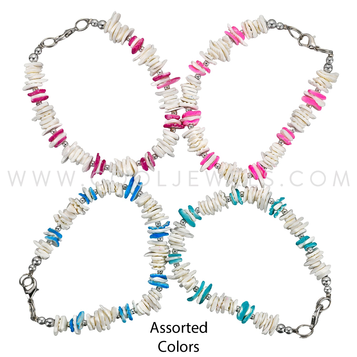 SHELL BRACELET WITH SILVER BEADS - ASSORTED