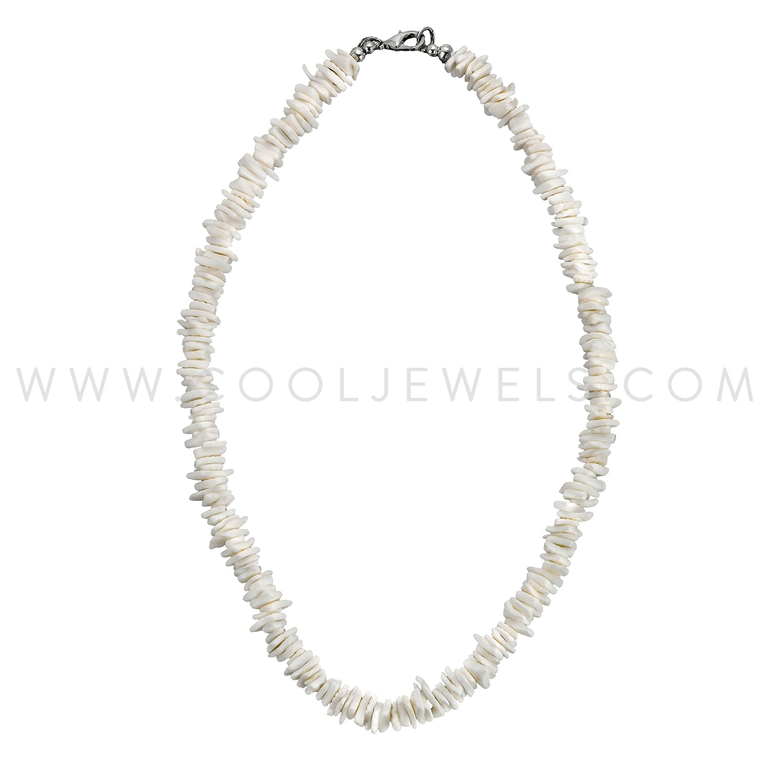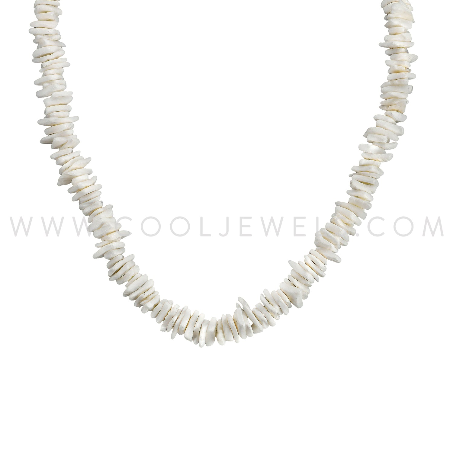 These 20" White Shell Chip Necklace features a 20 inch white chip shell necklace.