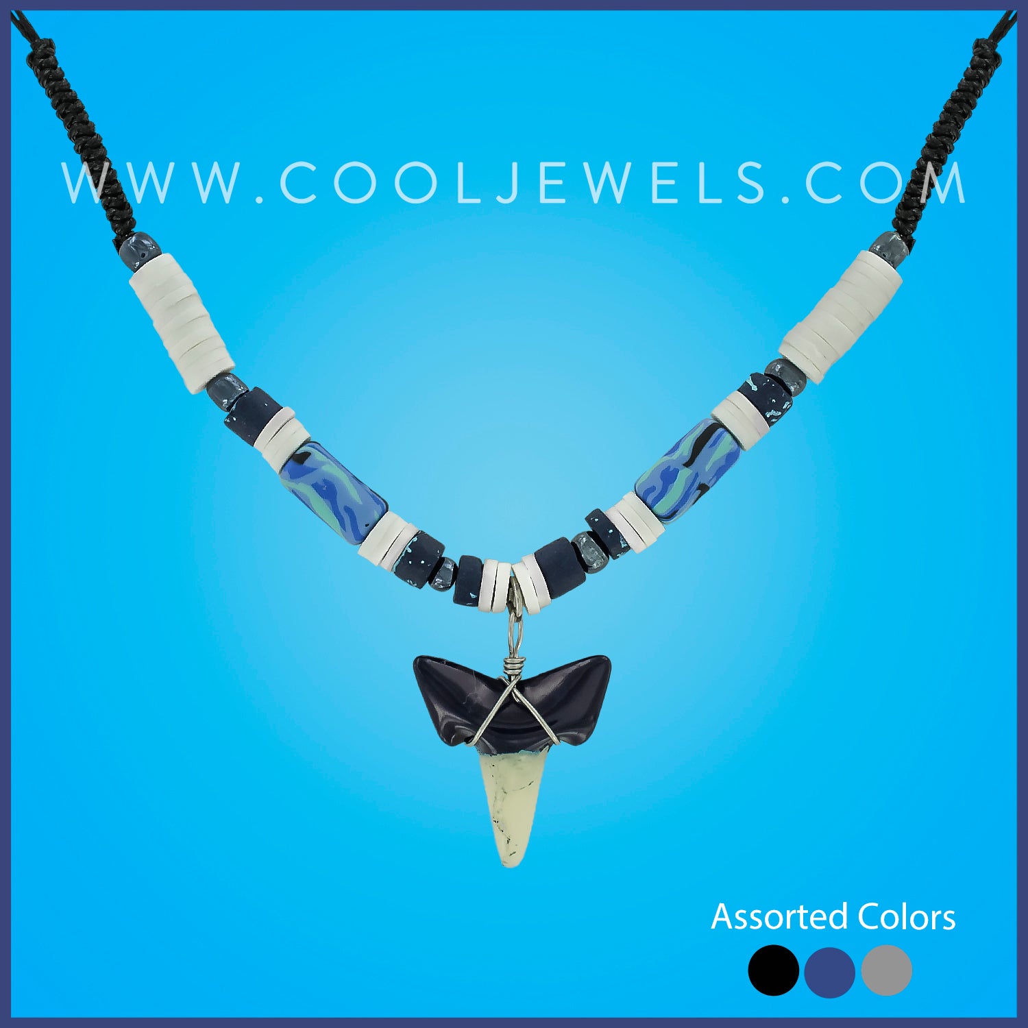 BLACK SLIDER CORD NECKLACE WITH IMITATION SHARK TOOTH PENDANT - ASSORTED