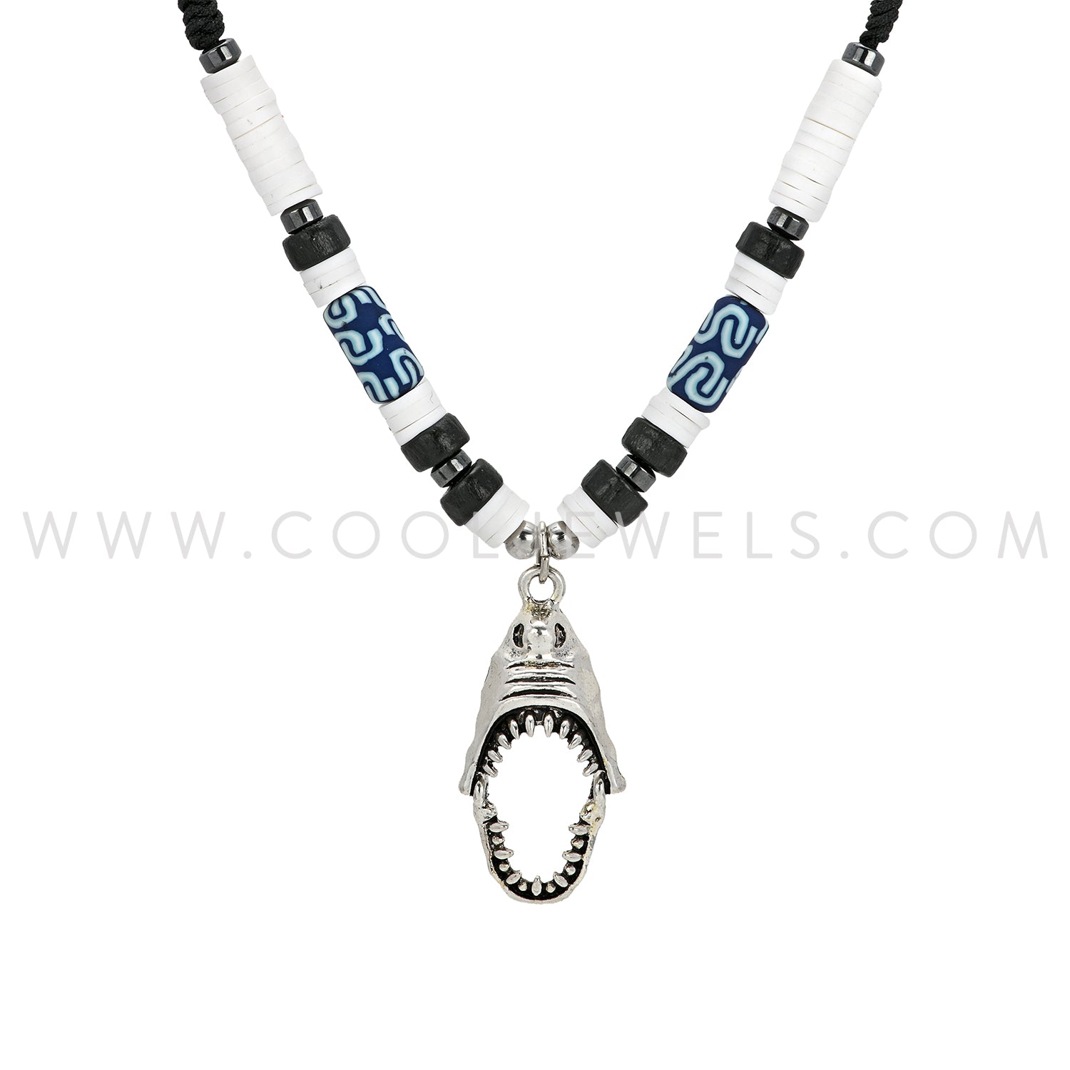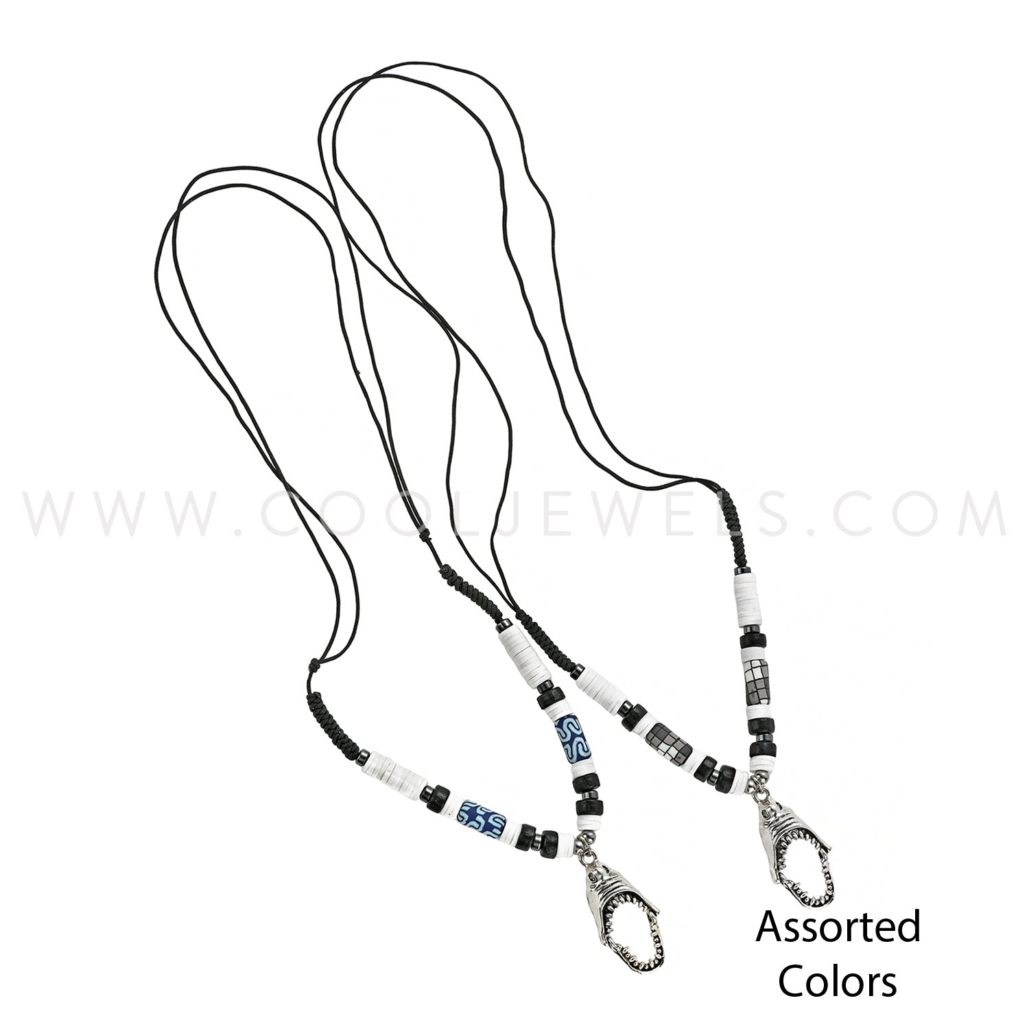 BLACK SLIDER CORD NECKLACE WITH SHARK JAW PENDANT - ASSORTED