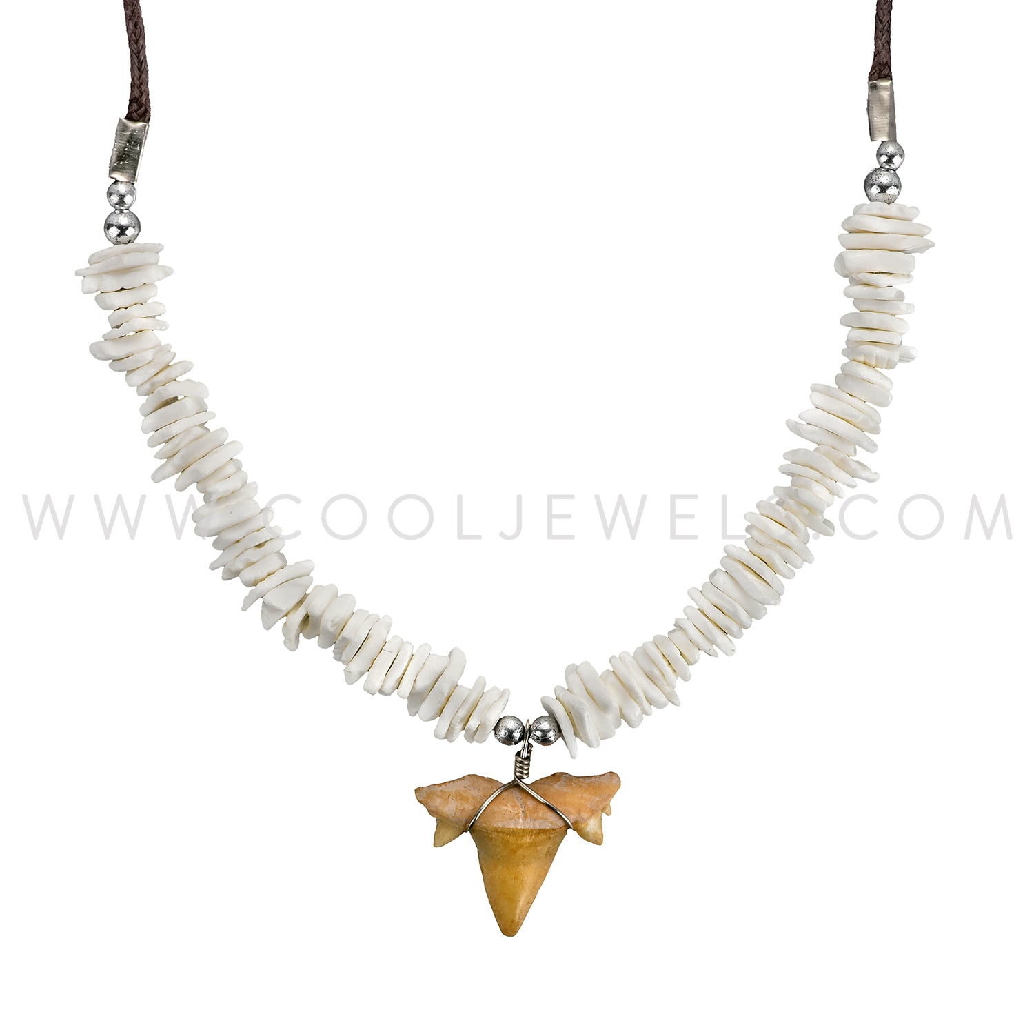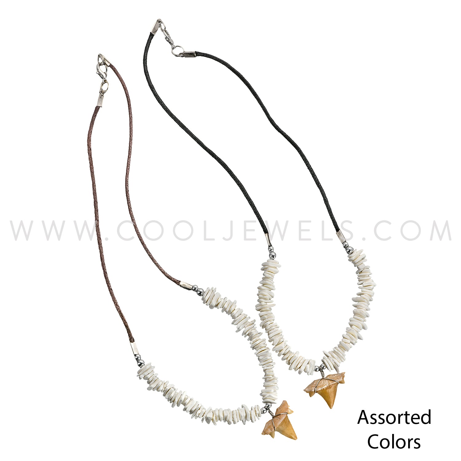 BLACK CORD & SHELL CHIP NECKLACE WITH IMITATION TOOTH PENDANT