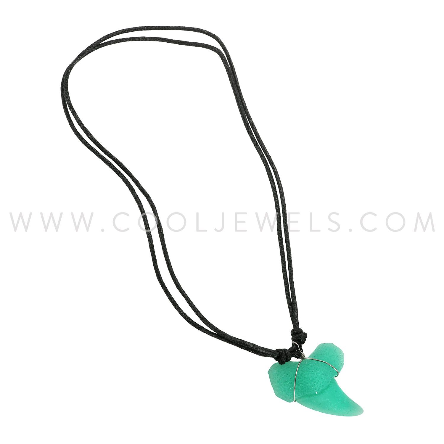 BLACK SLIDER CORD NECKLACE WITH BLUE GLOW-IN-THE-DARK TOOTH PENDANT