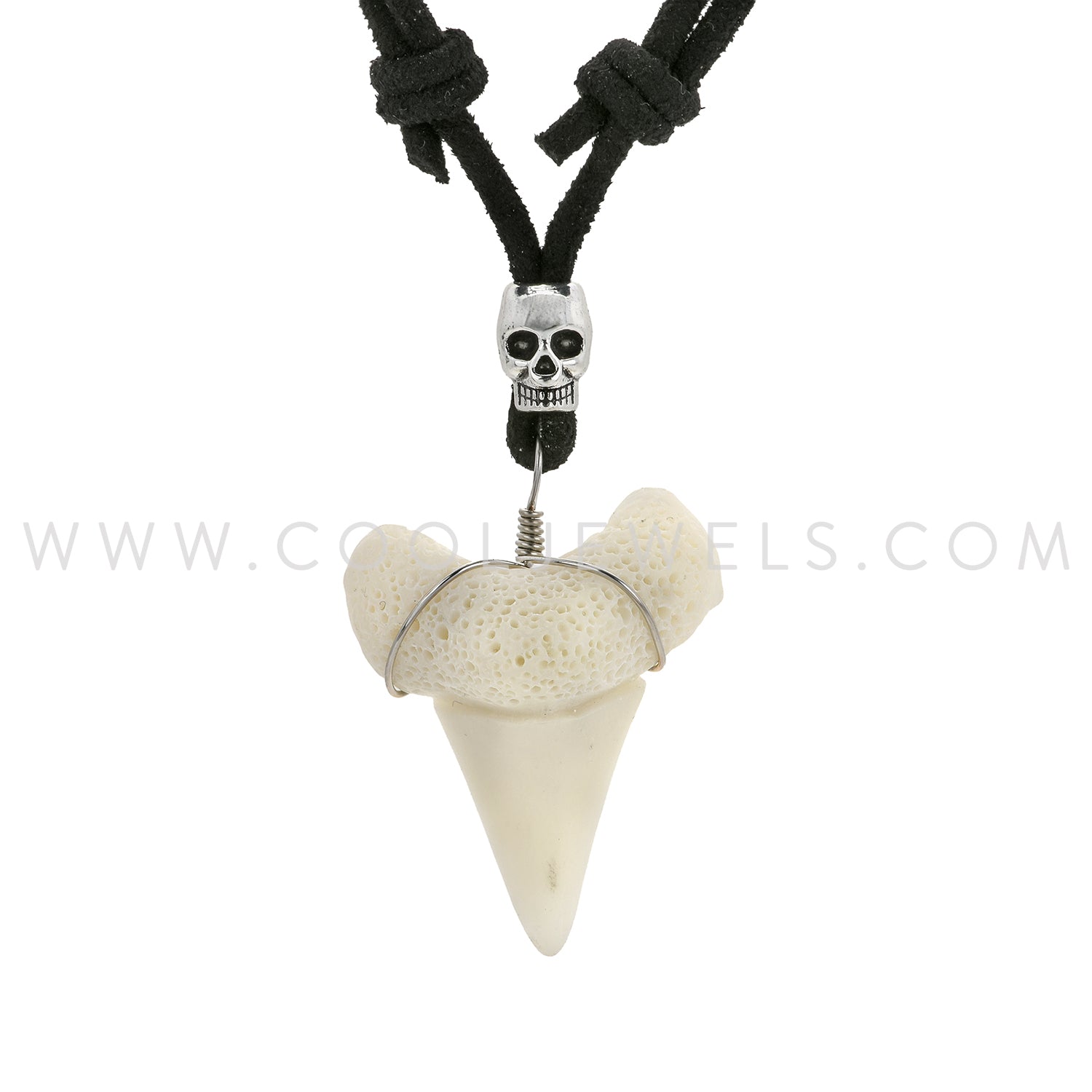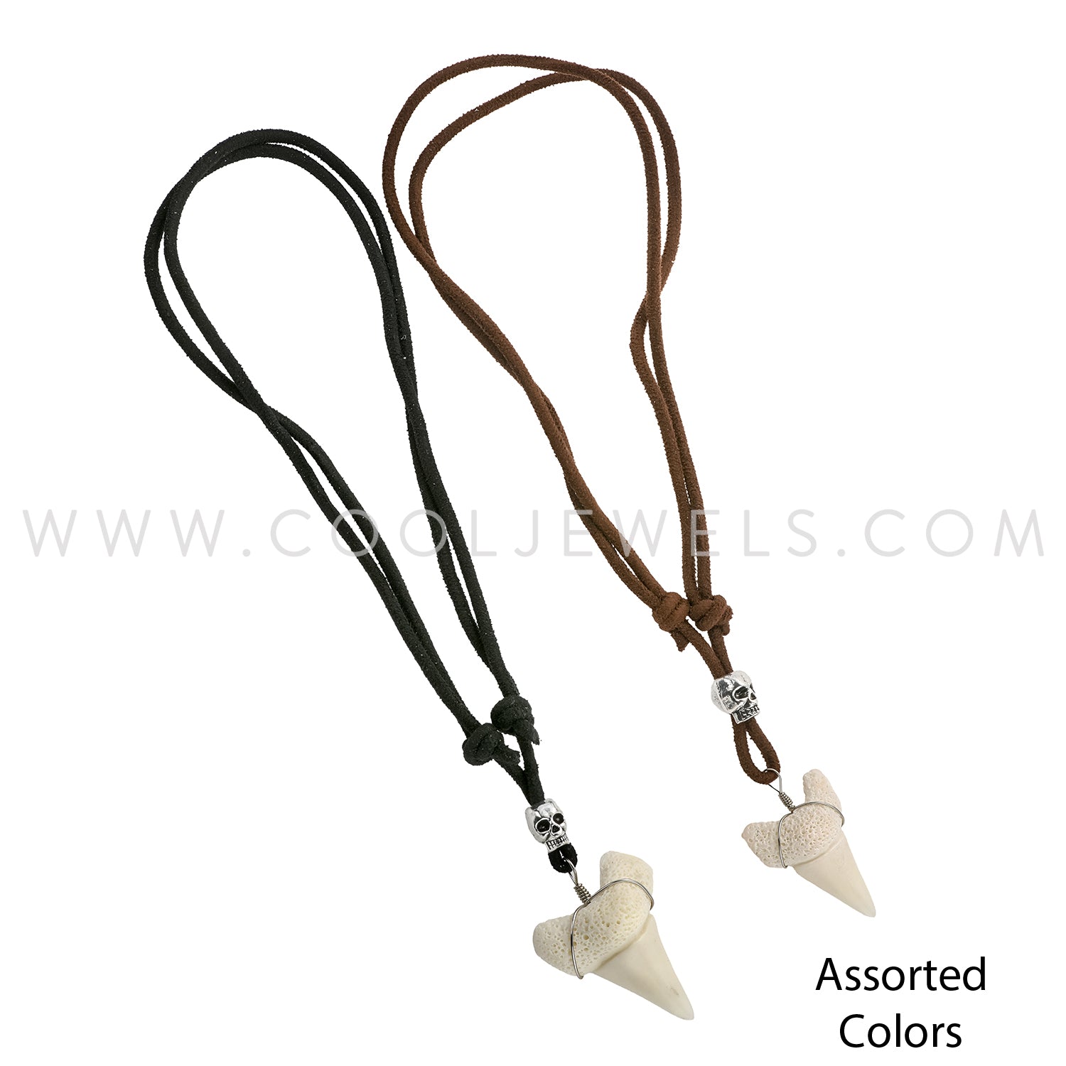 SLIDER COD NECKLACE WITH SKULL & IMITATION SHARK TOOTH PENDANT - ASSORTED