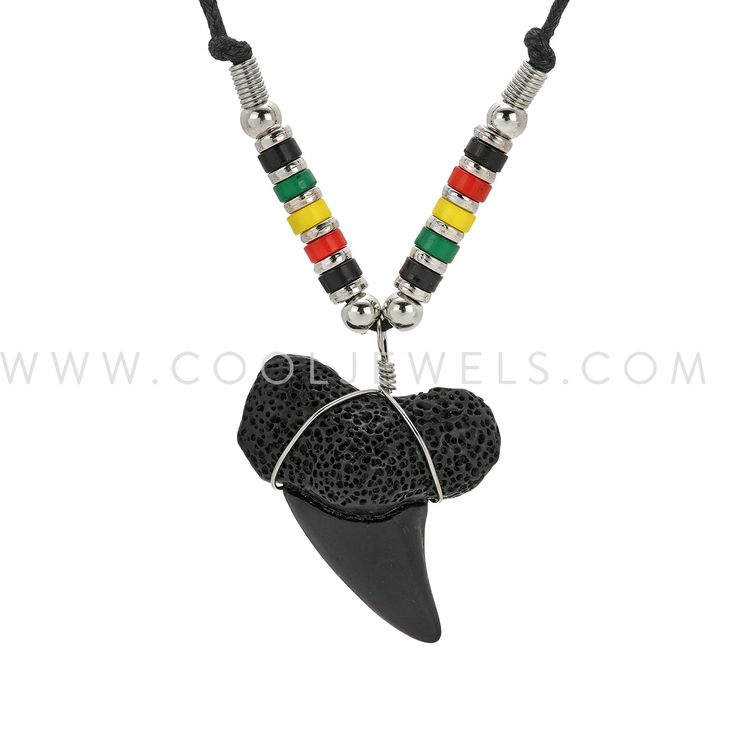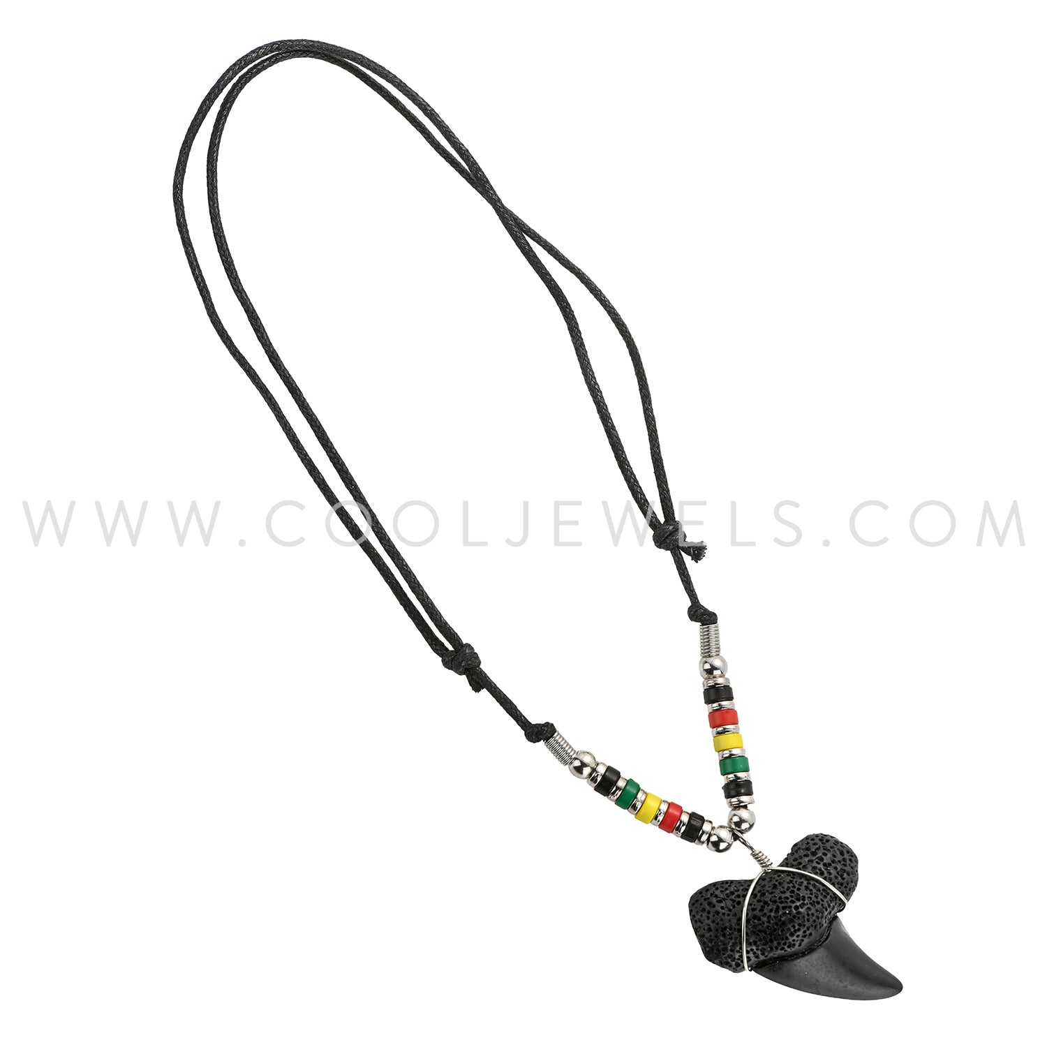 SLIDER NECKLACE WITH RASTA BEADS & IMITATION TOOTH PENDANT