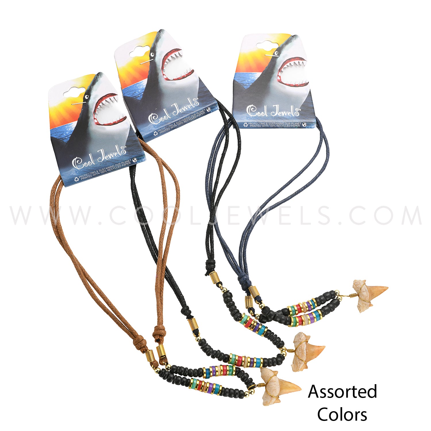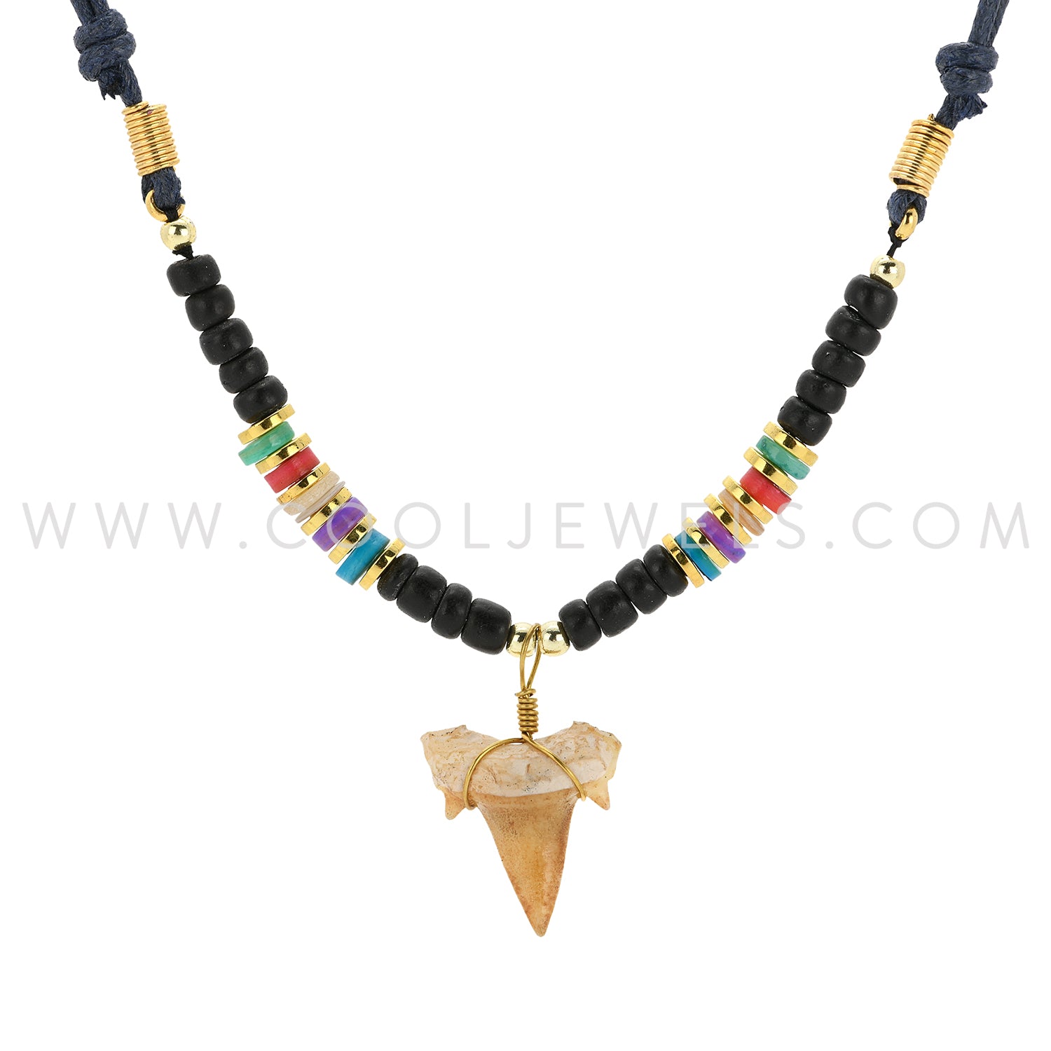 SLIDER CORD NECKLACE WITH COLOR BEADS & IMITATION SHARK TOOTH PENDANT