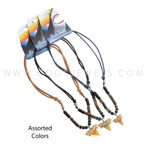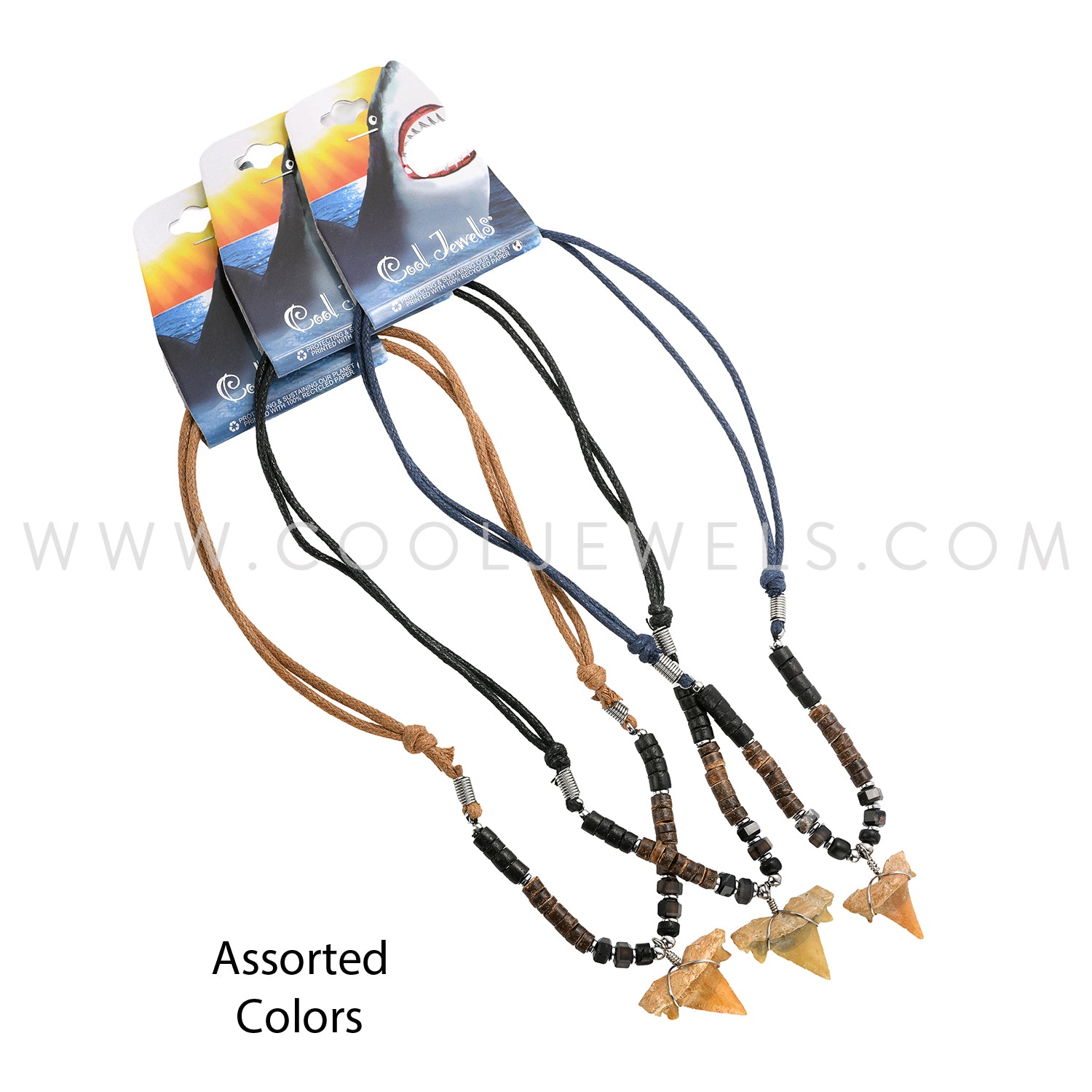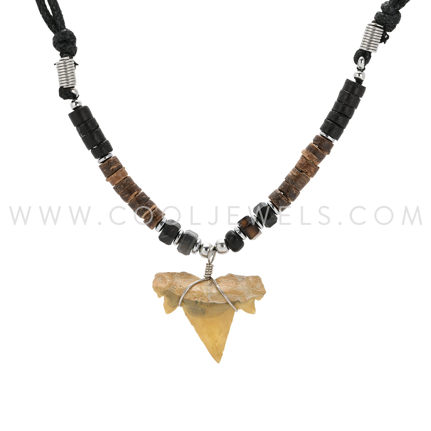 SLIDER CORD NECKLACE WITH BEADS & IMITATION SHARK TOOTH PENDANT