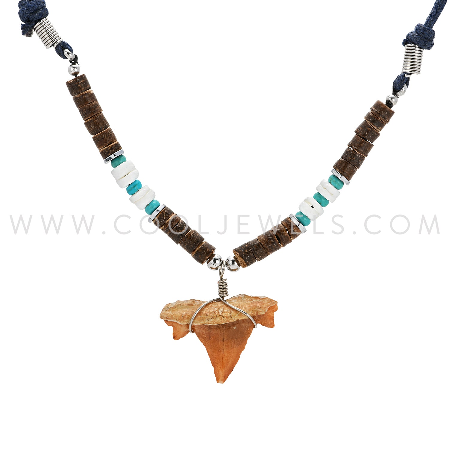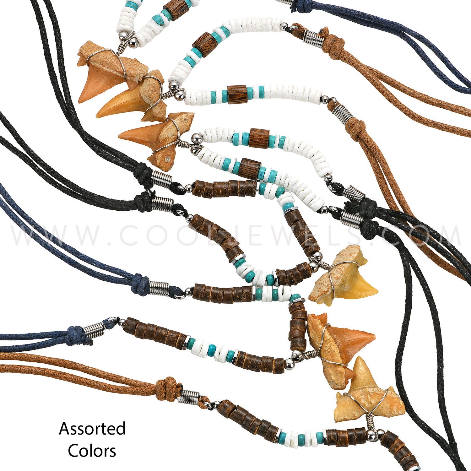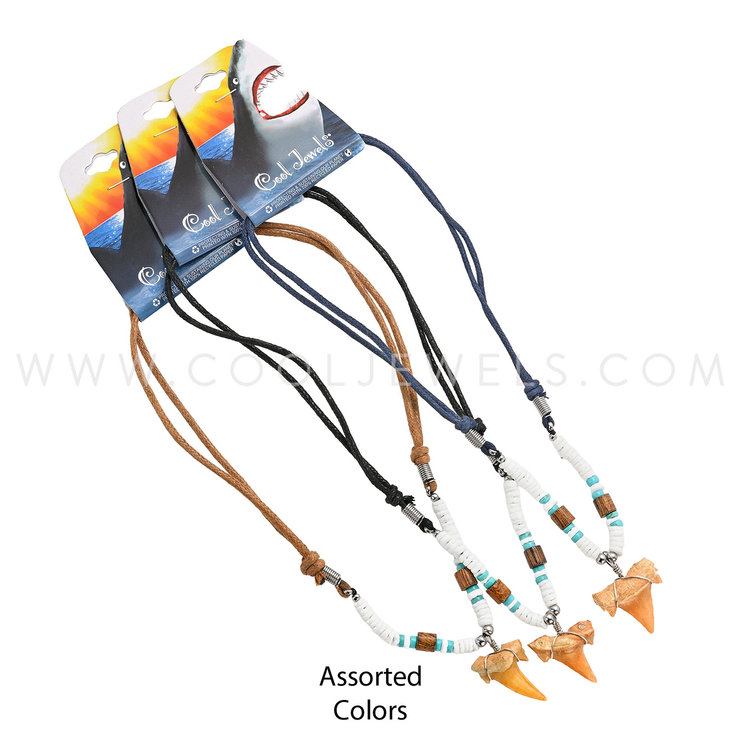 SLIDER CORD NECKLACE WITH COLOR BEADS & IMITATION SHARK TOOTH PENDANT