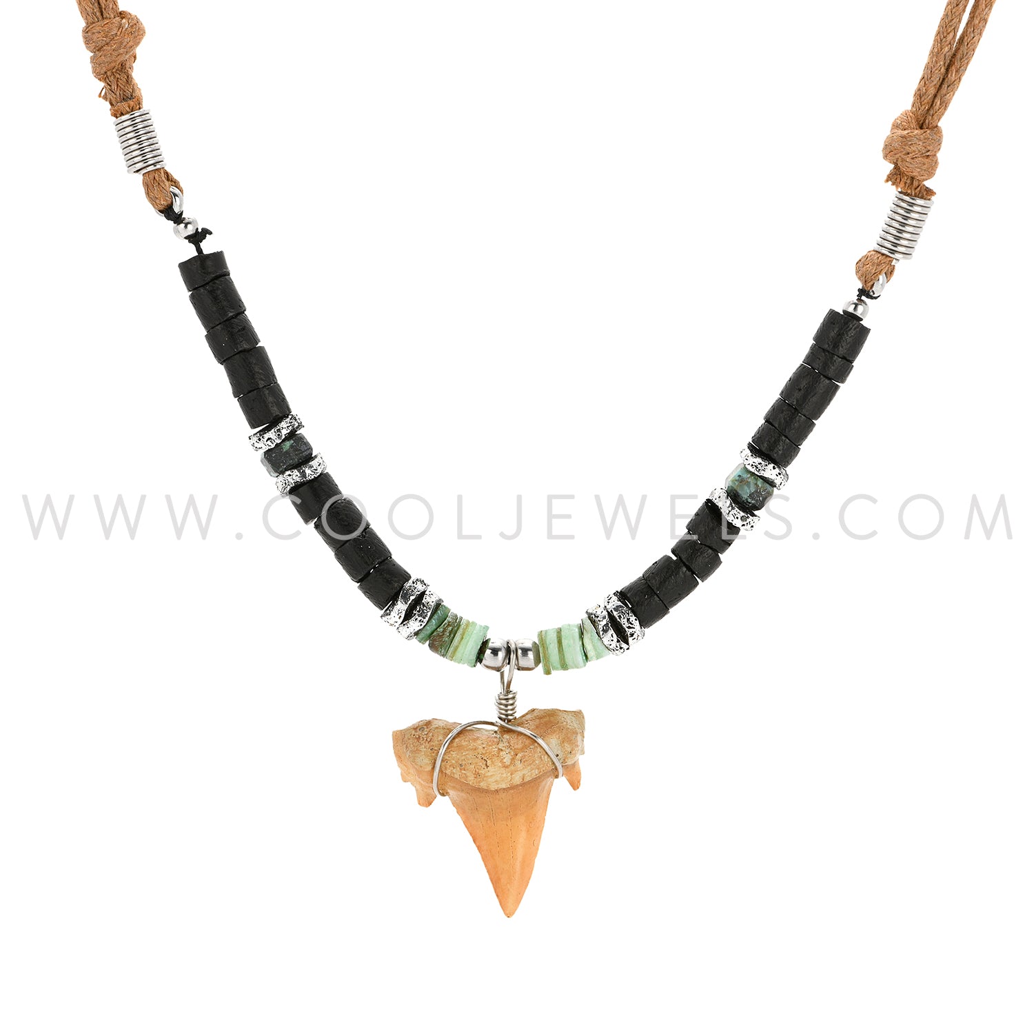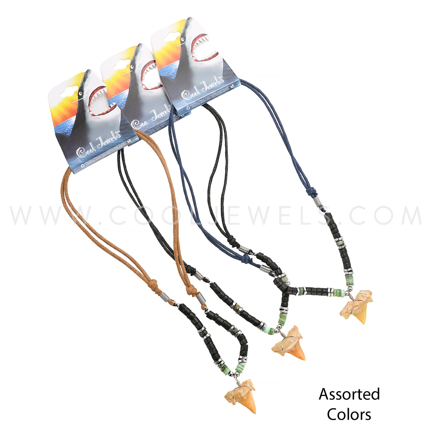 SLIDER CORD NECKLACE WITH COLOR BEADS & IMITATION SHARK TOOTH PENDANT
