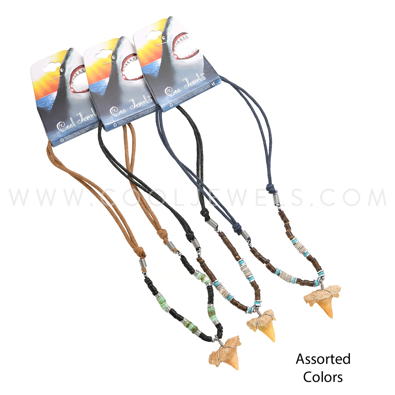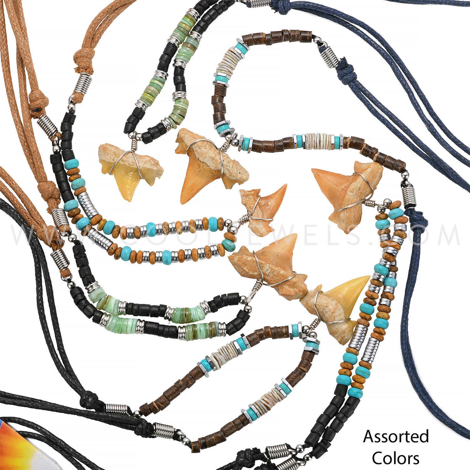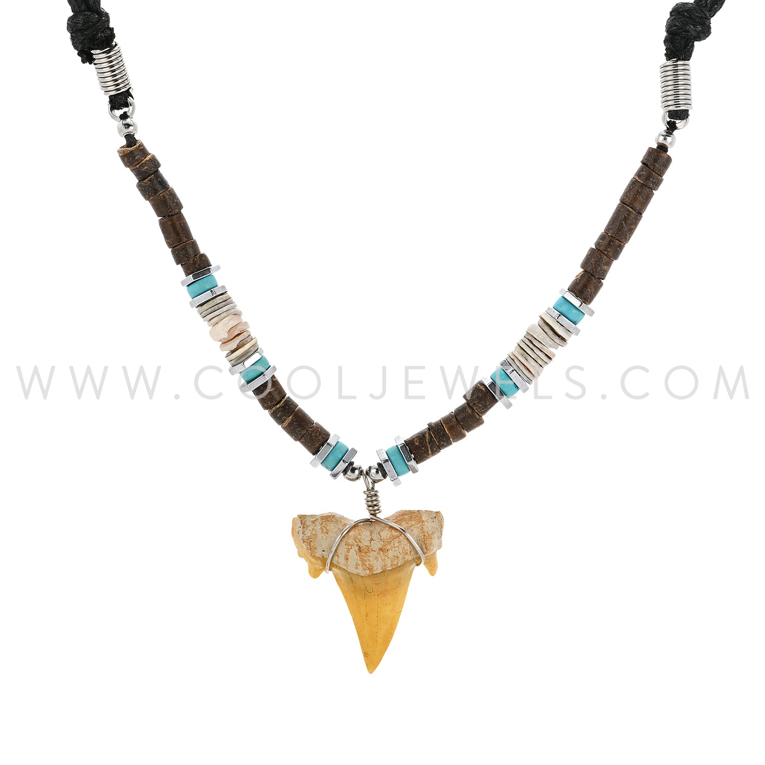 SLIDER CORD NECKLACE WITH COLOR BEADS & IMITATION SHARK TOOTH PENDANT