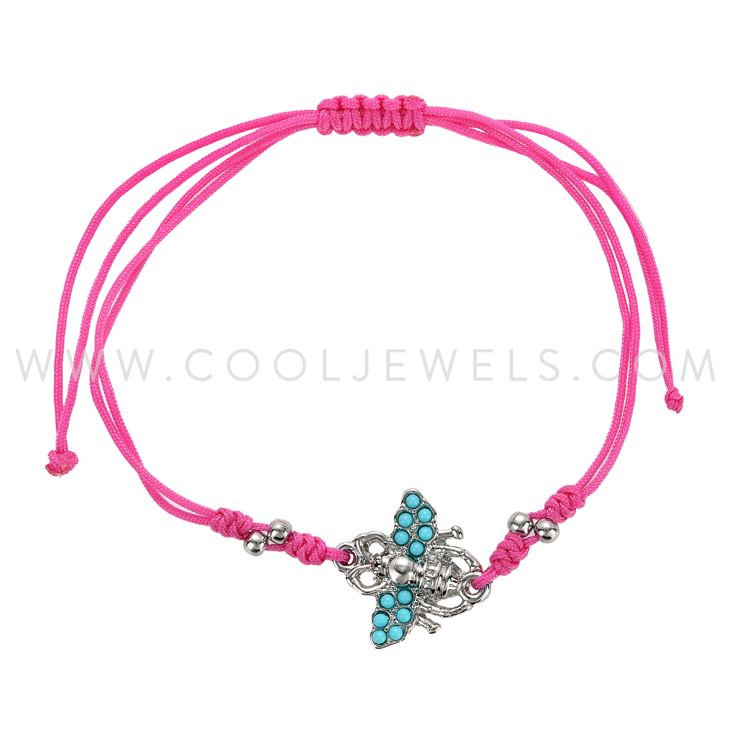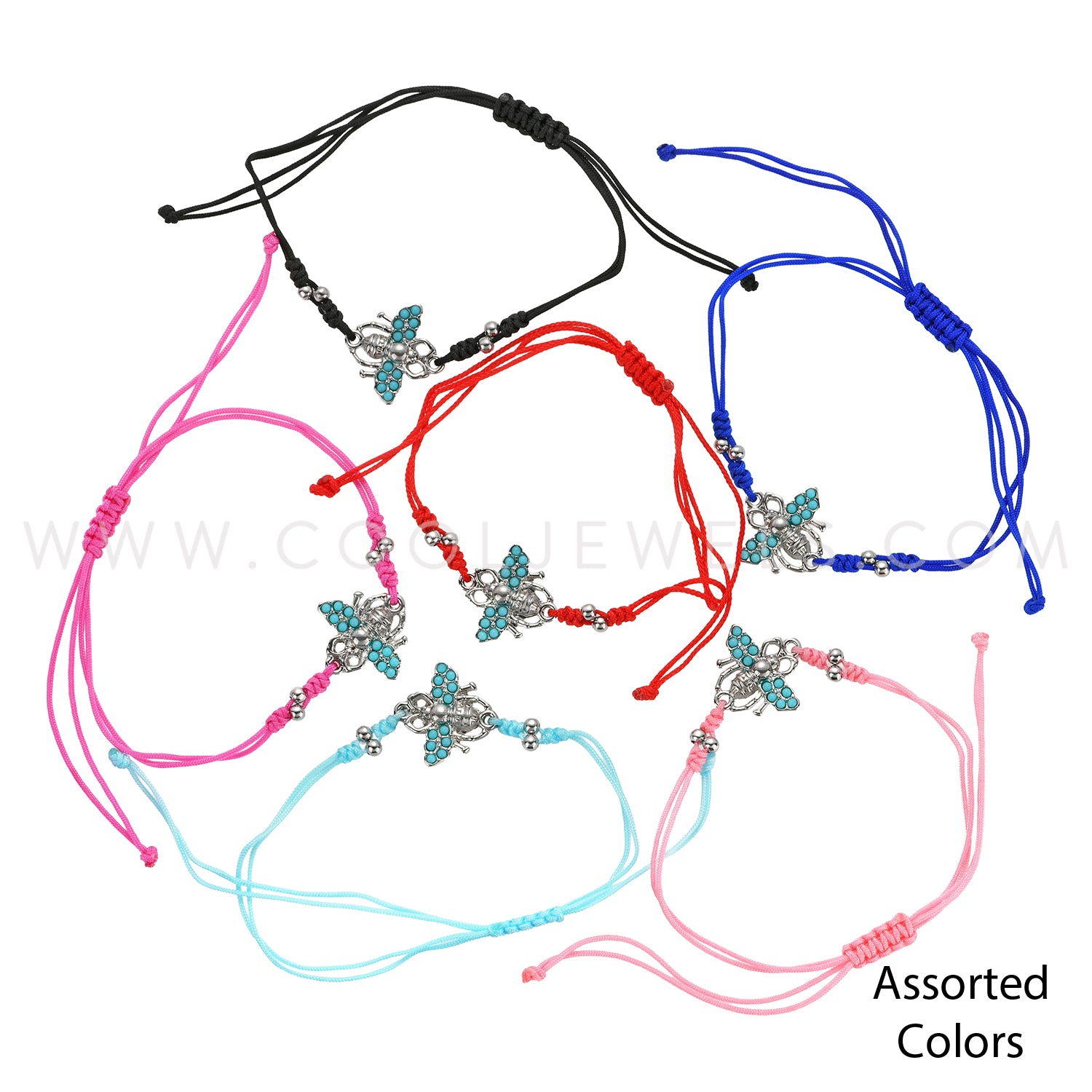 COLORED STRING BRACELET WITH TURQUOISE BEE PENDANT CARDED