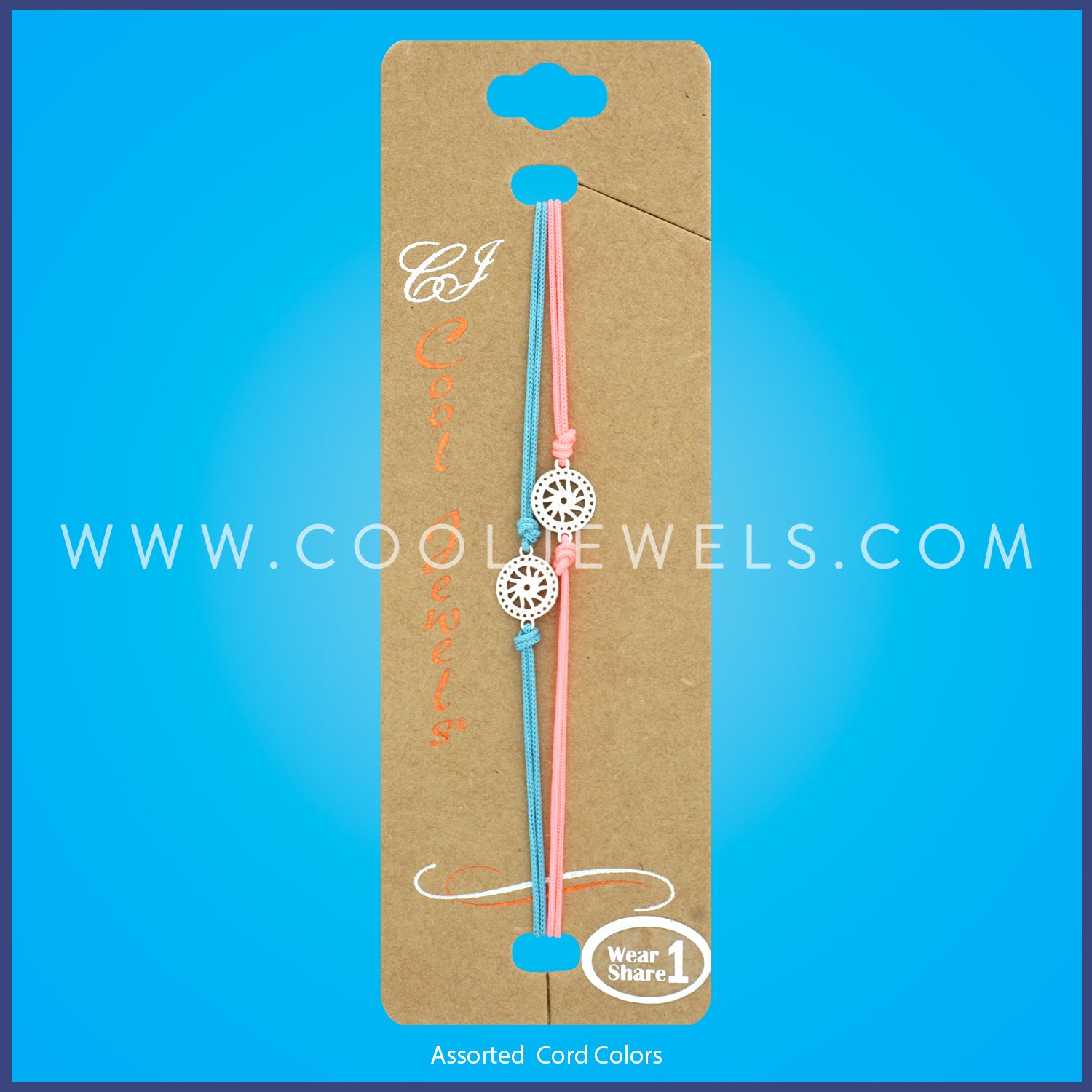 (SET OF 2) COLOR CORD SLIDER BRACELET WITH DECORATIVE CIRCLE CARDED