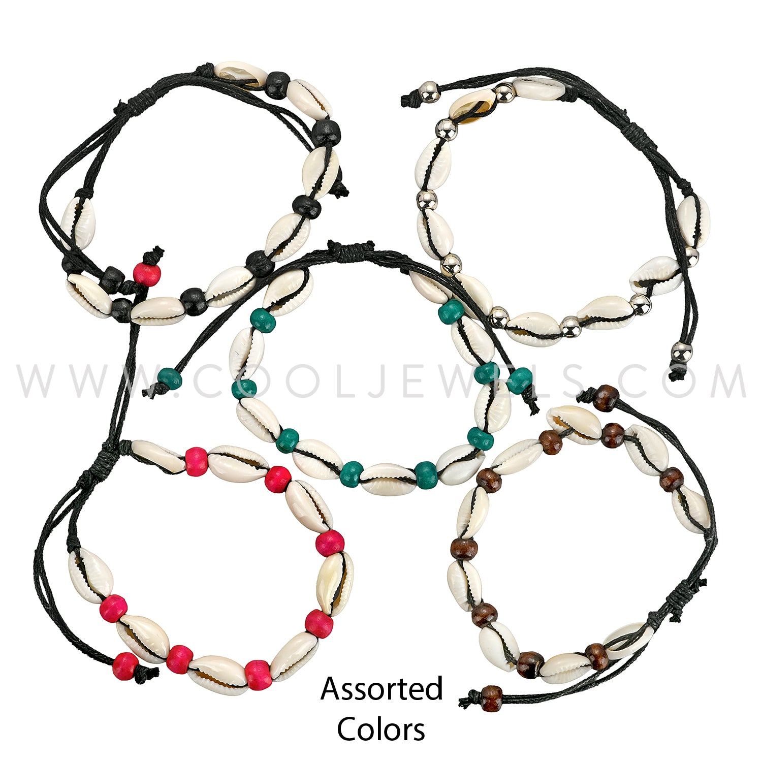 WOVEN BRACELET/ANKLET WITH BEADS AND COWRIE SHELLS - ASSORTED