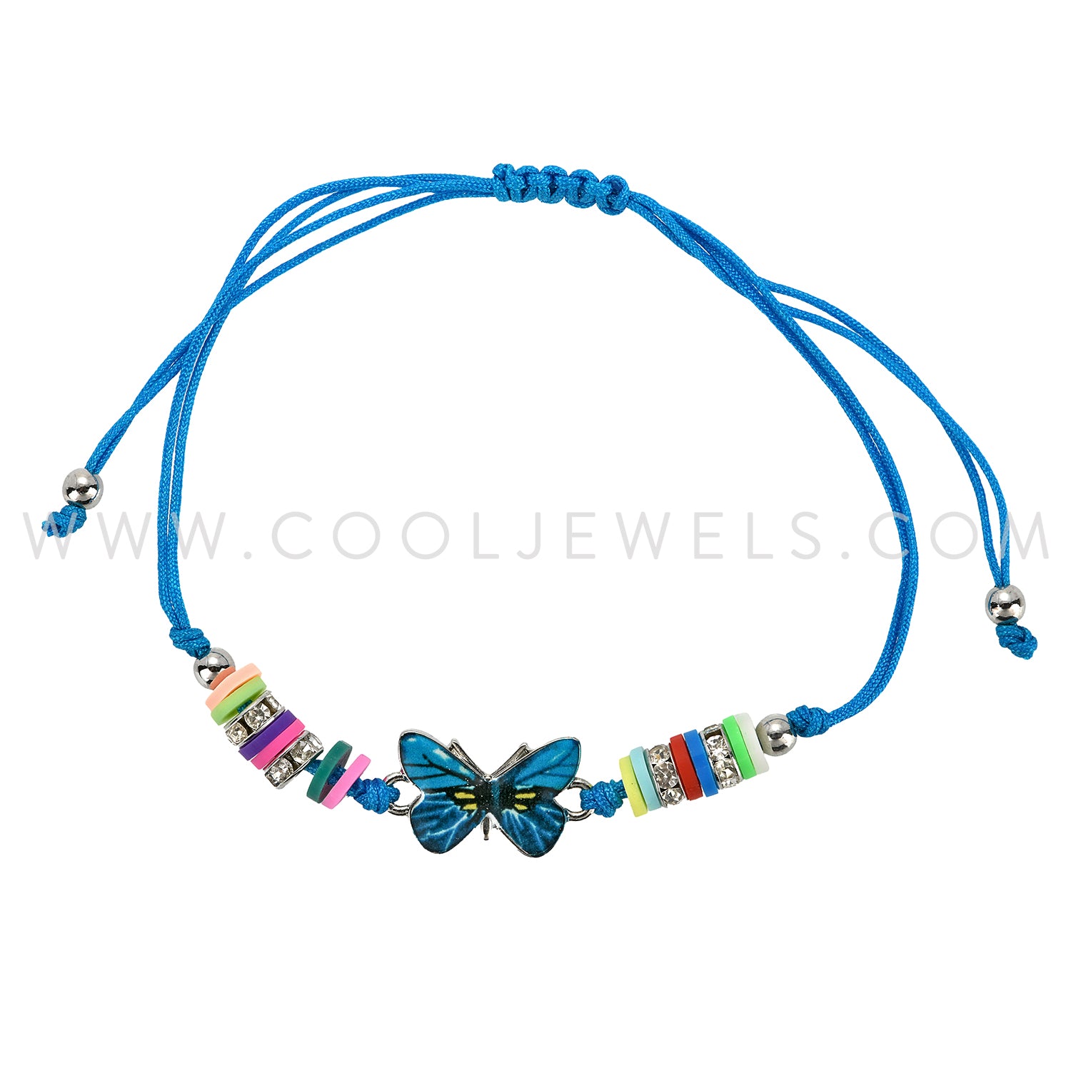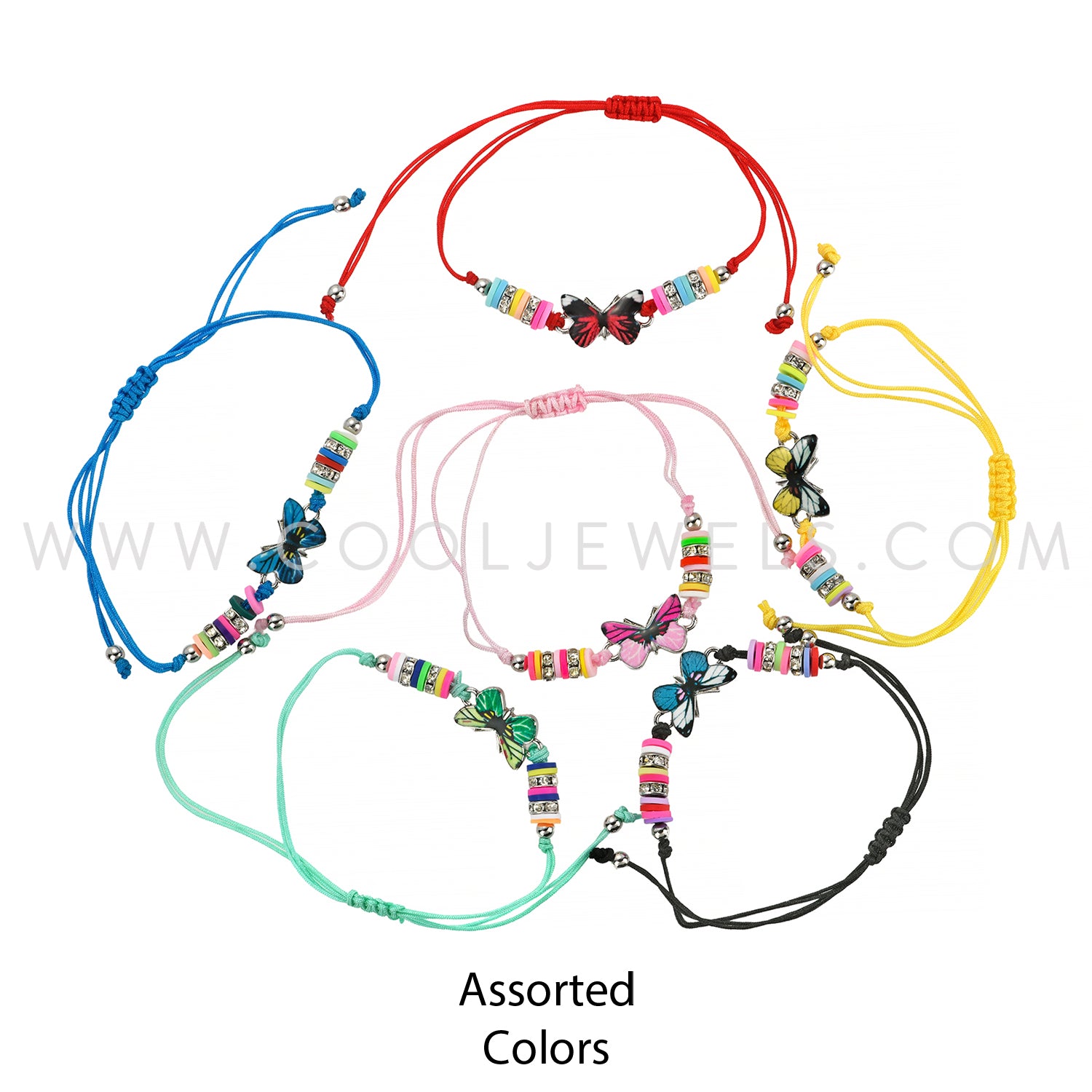STRING SLIDER BRACELET WITH FIMO DISC & BUTTERFLY PENDANT - ASSORTMENT
