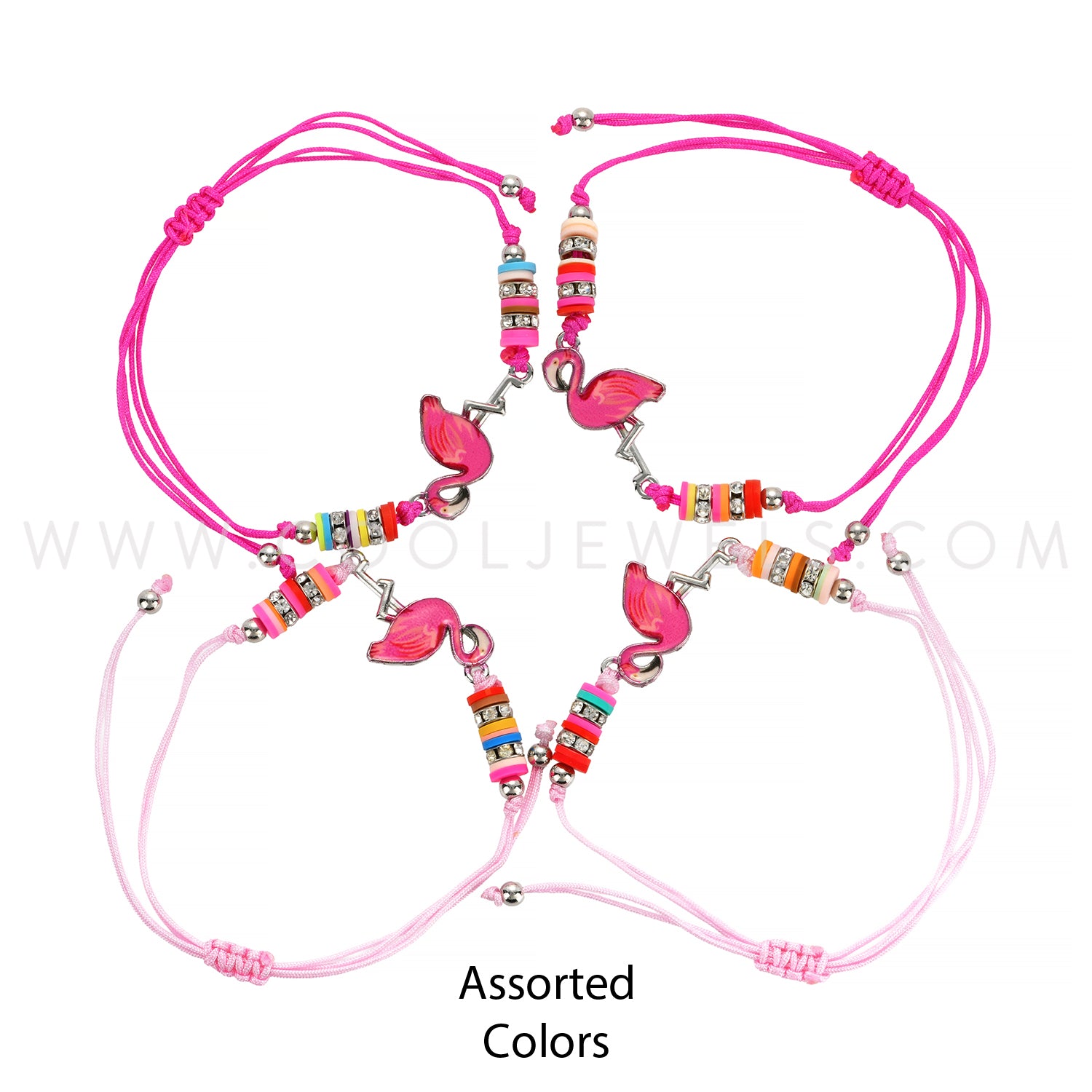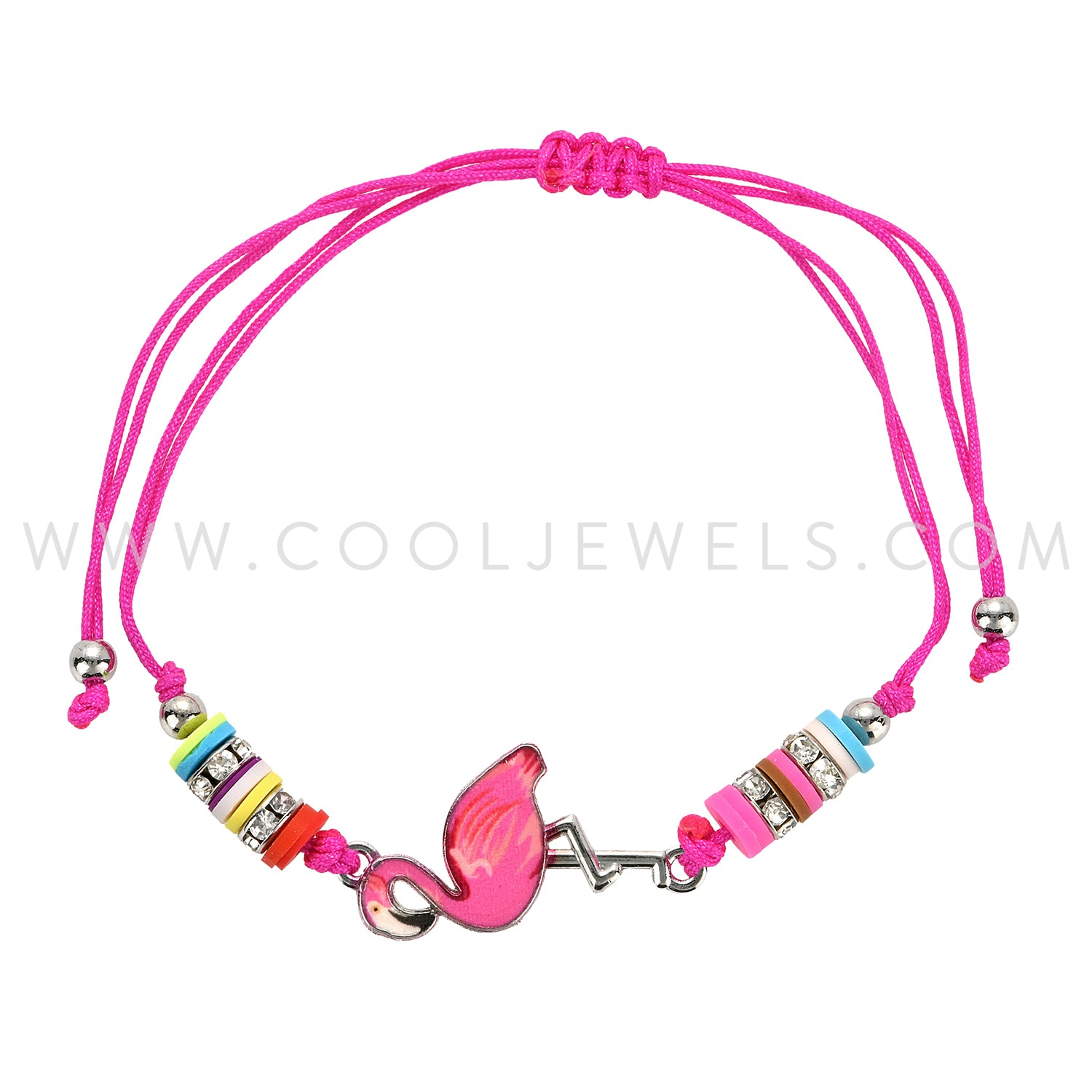 STRING SLIDER BRACELET WITH FIMO DISC & FLAMINGO PENDANT - ASSORTMENT