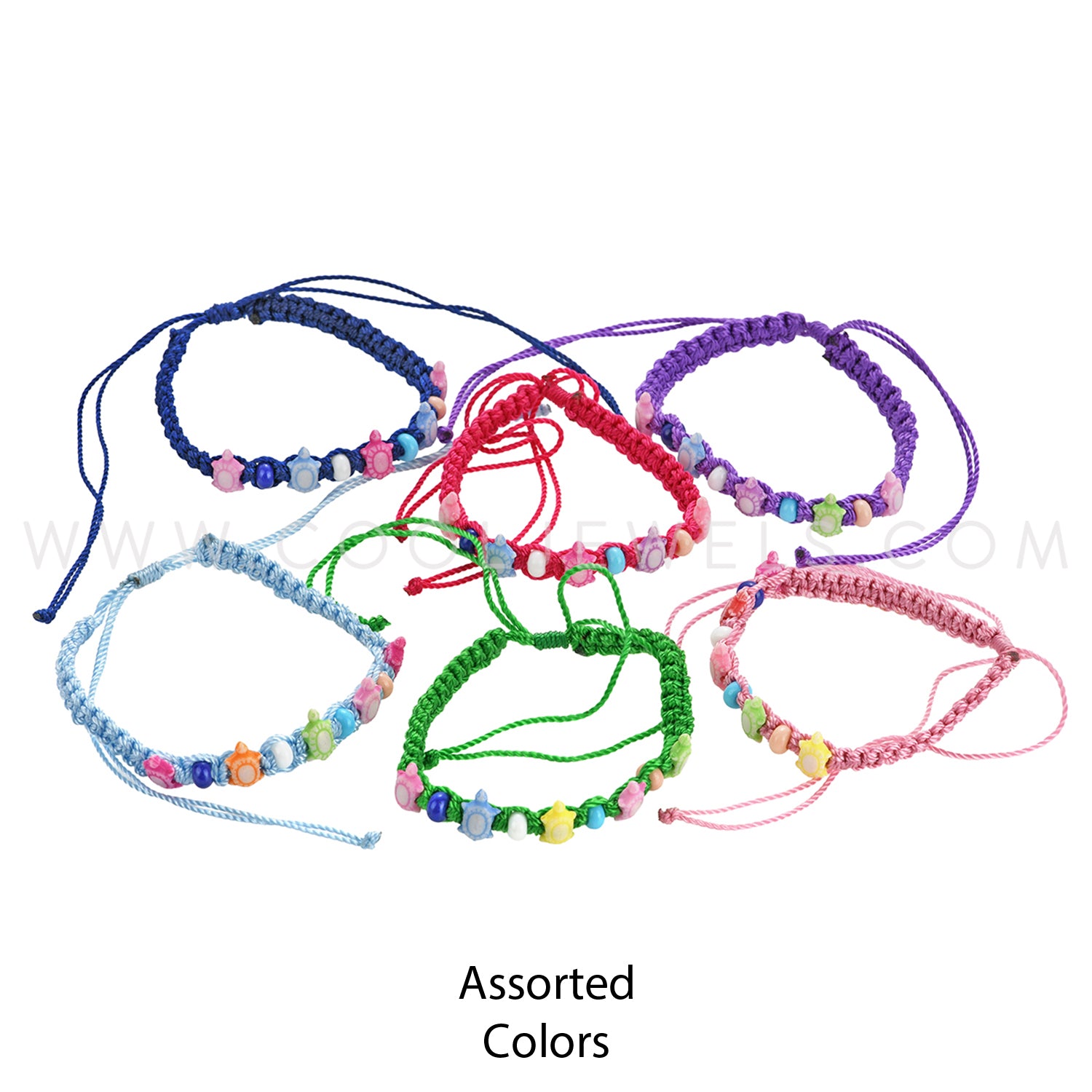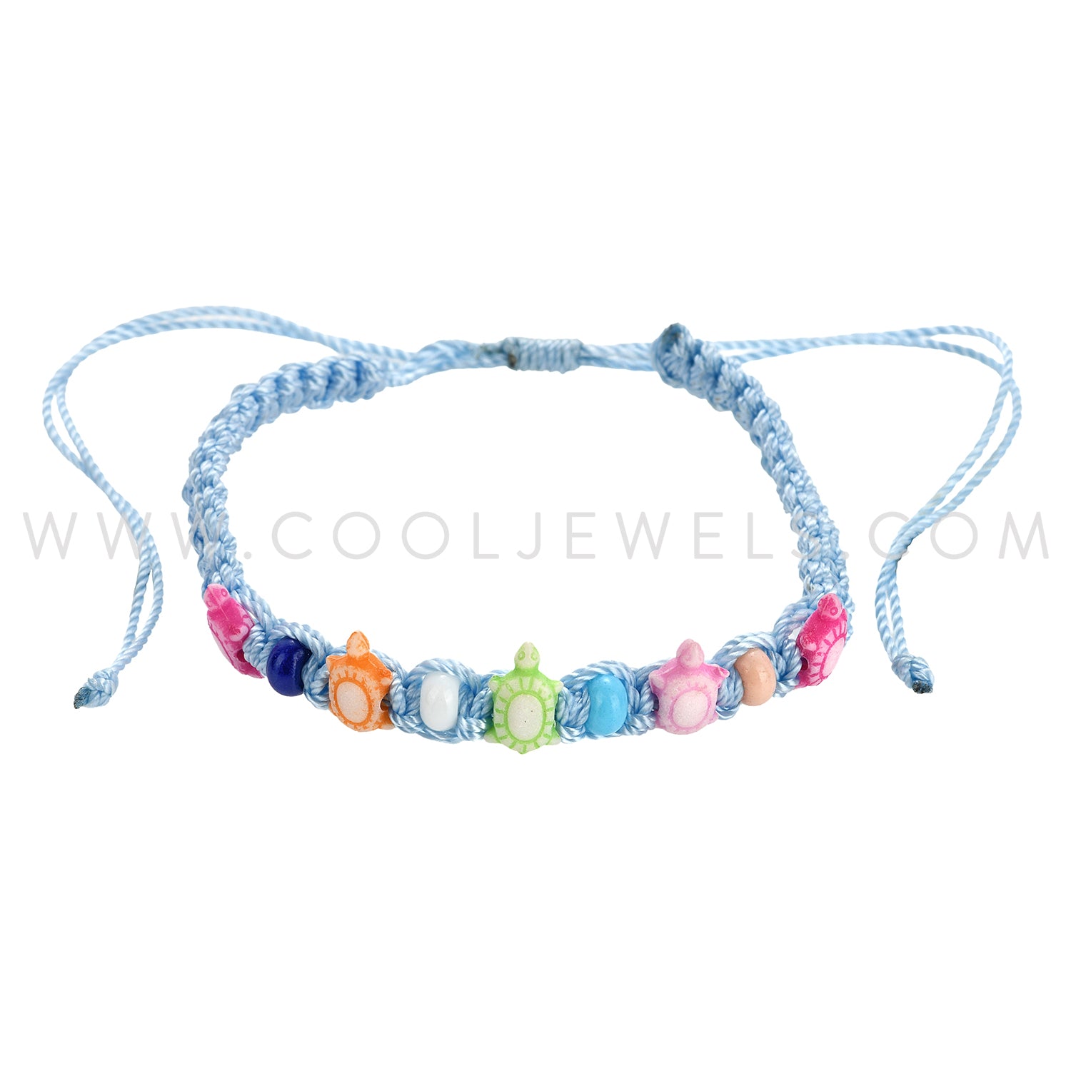 WOVEN SLIDER BRACELET WITH TURTLES & BEADS CARDED