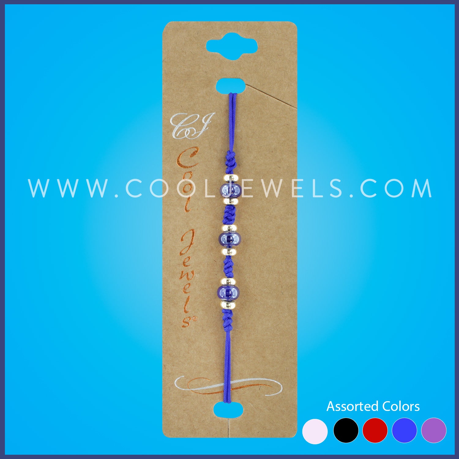DOUBLE STRING SLIDER BRACELET WITH COLORED BEADS - CARDED