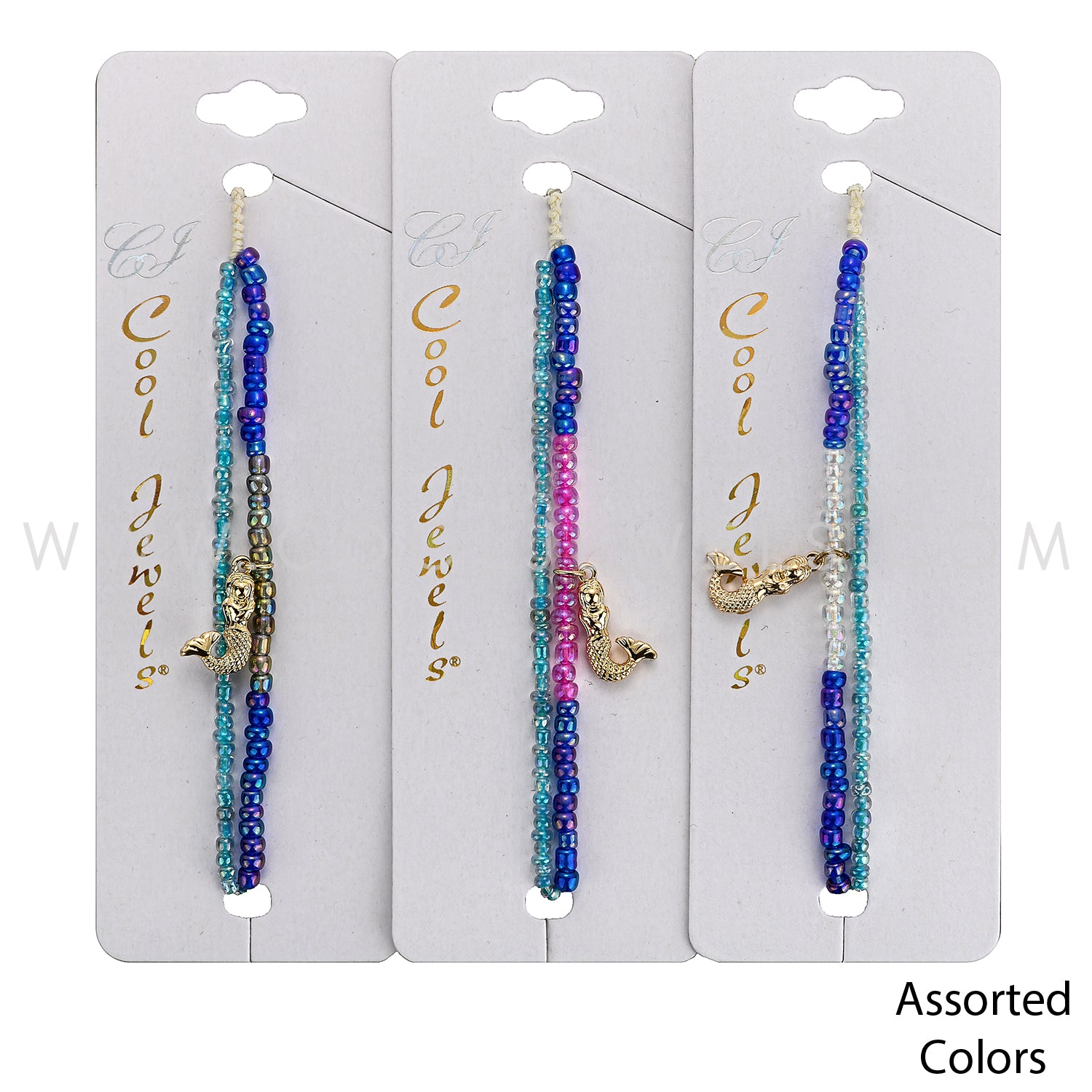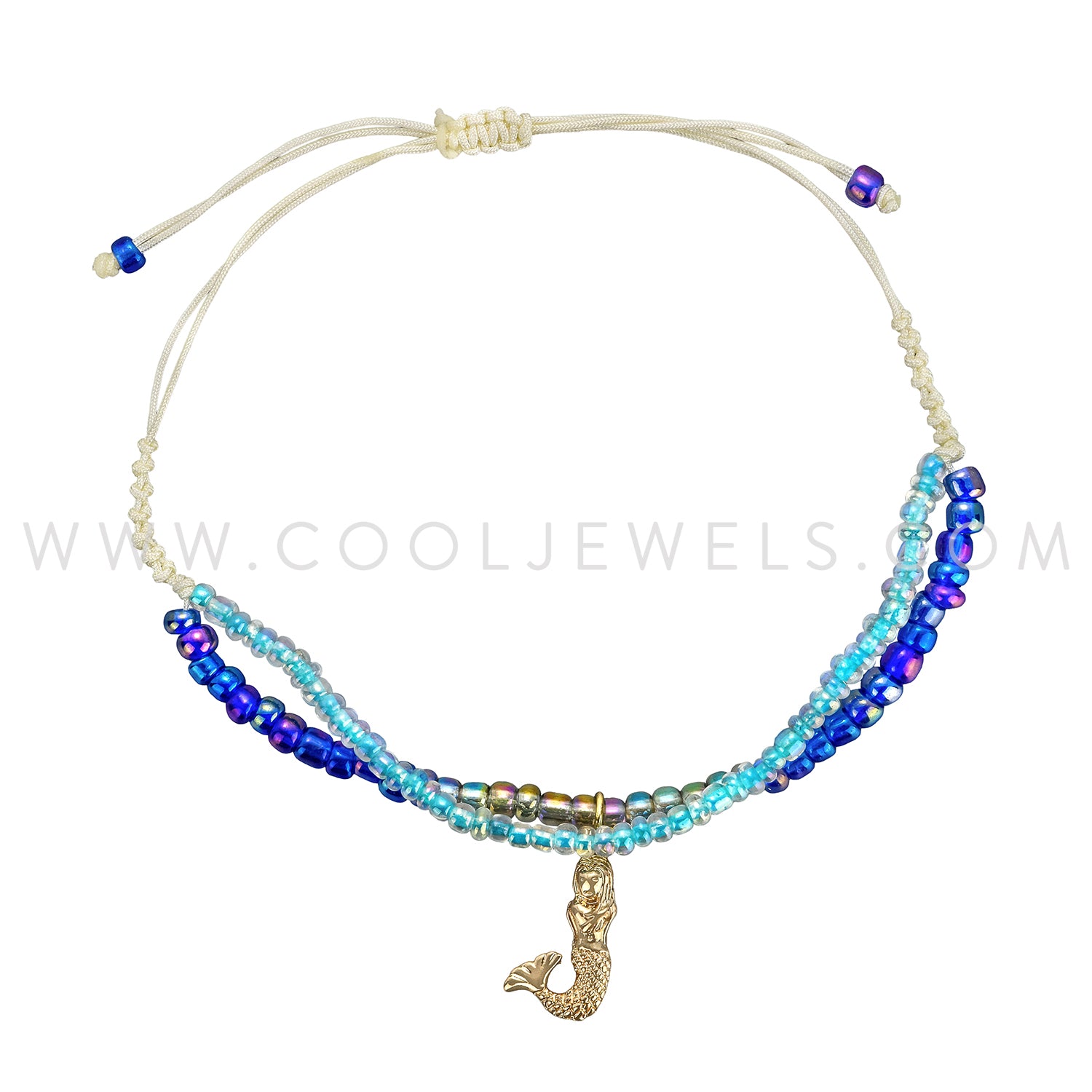 LAYERED STRING SLIDER BRACELET WITH BEADS & GOLD MERMAID