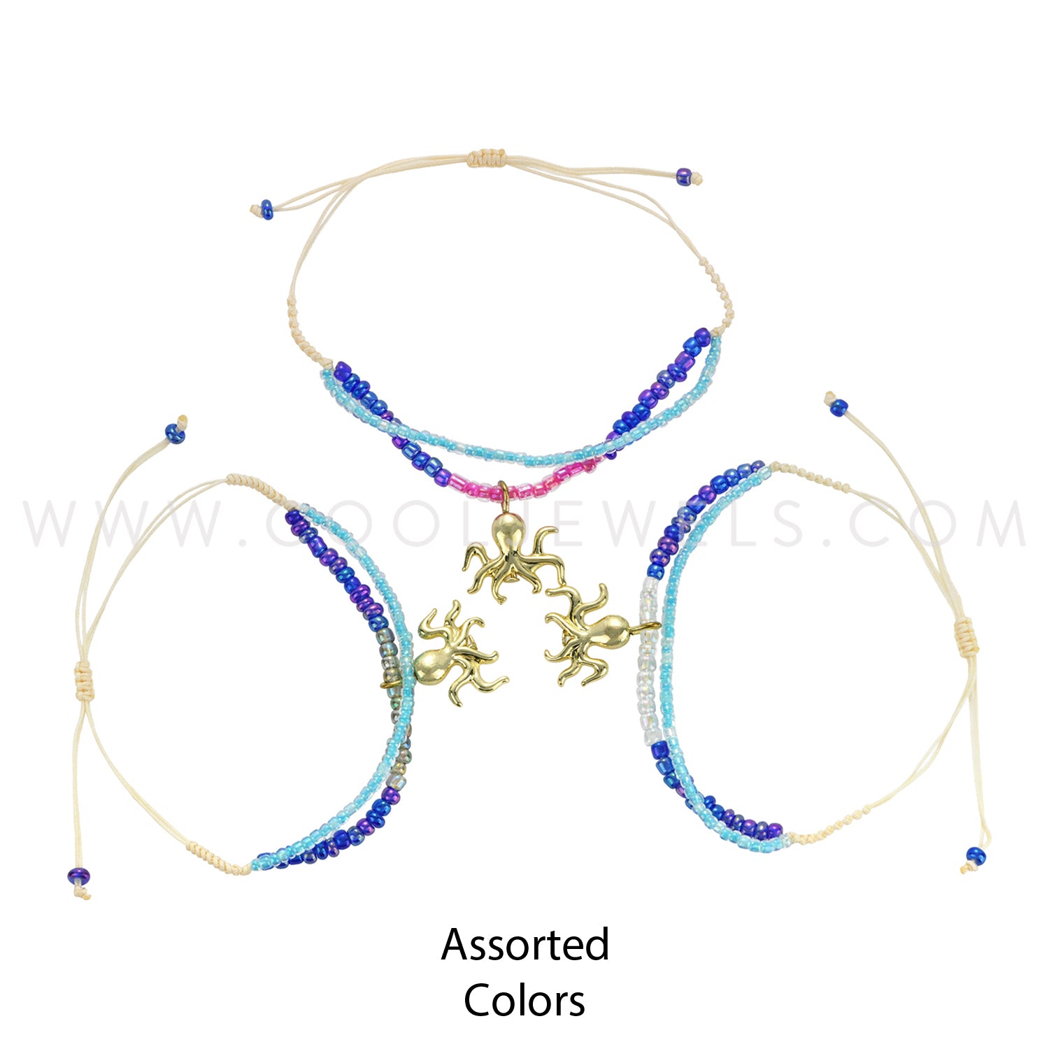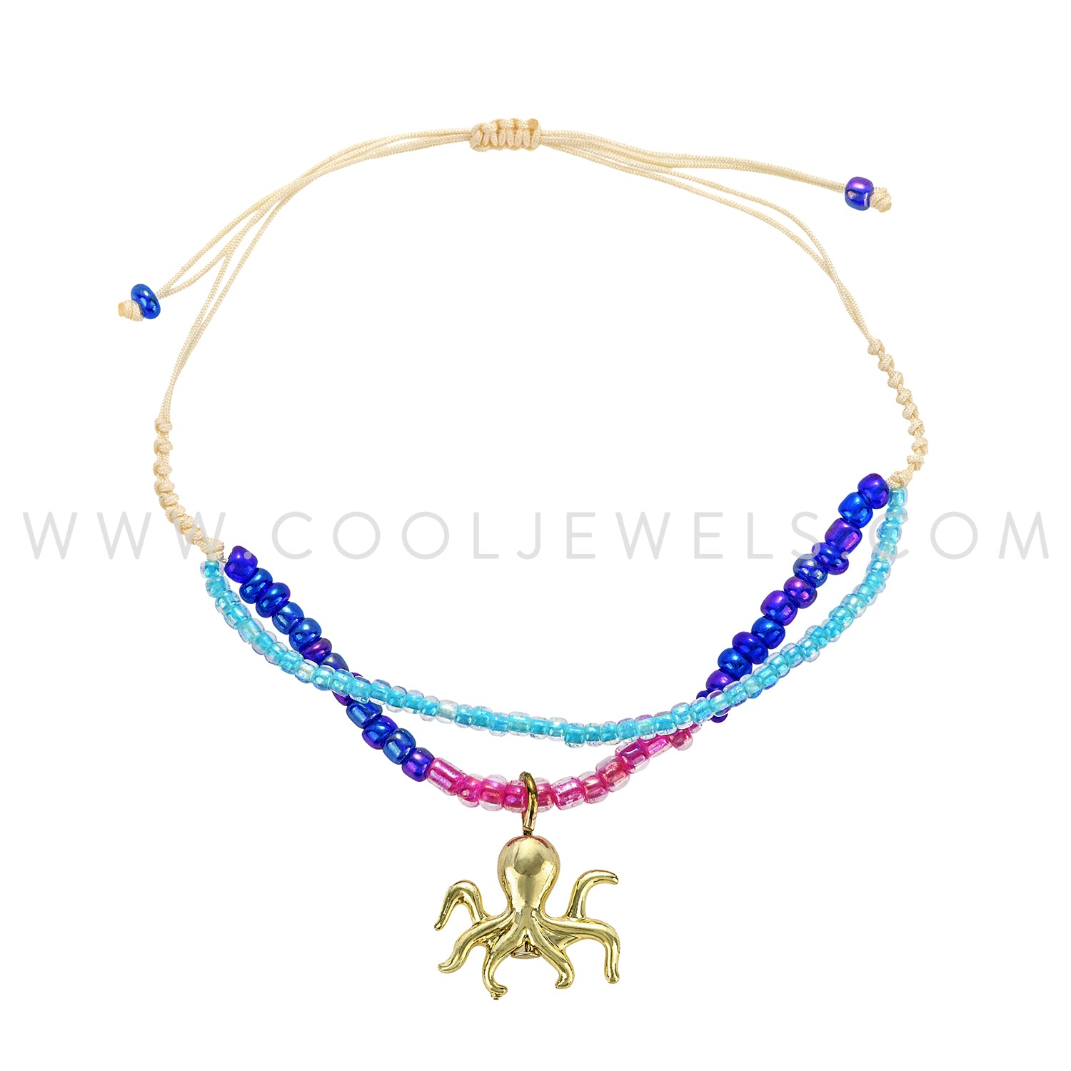 LAYERED STRING SLIDER BRACELET WITH BEADS & GOLD OCTOPUS