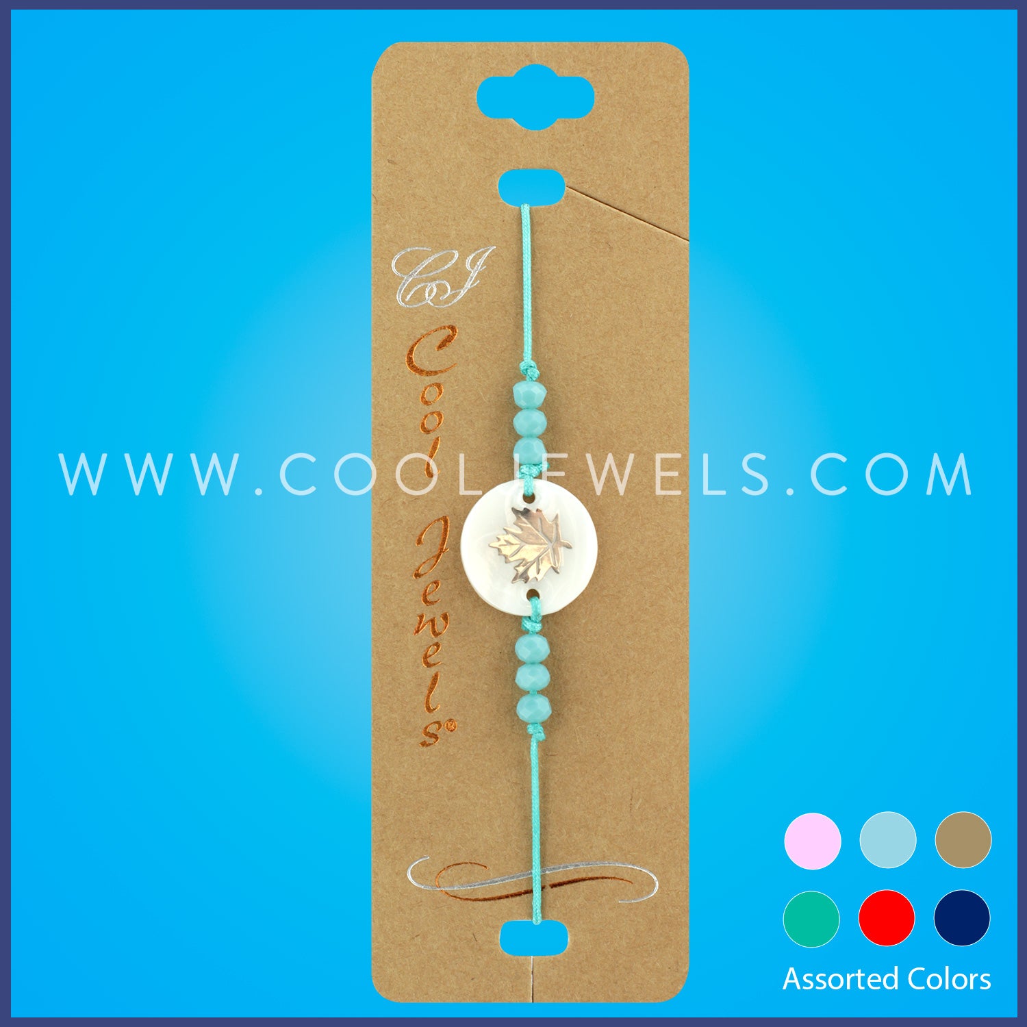Slider Bracelet with Round Shell Pendant and Maple Leaf Carded.