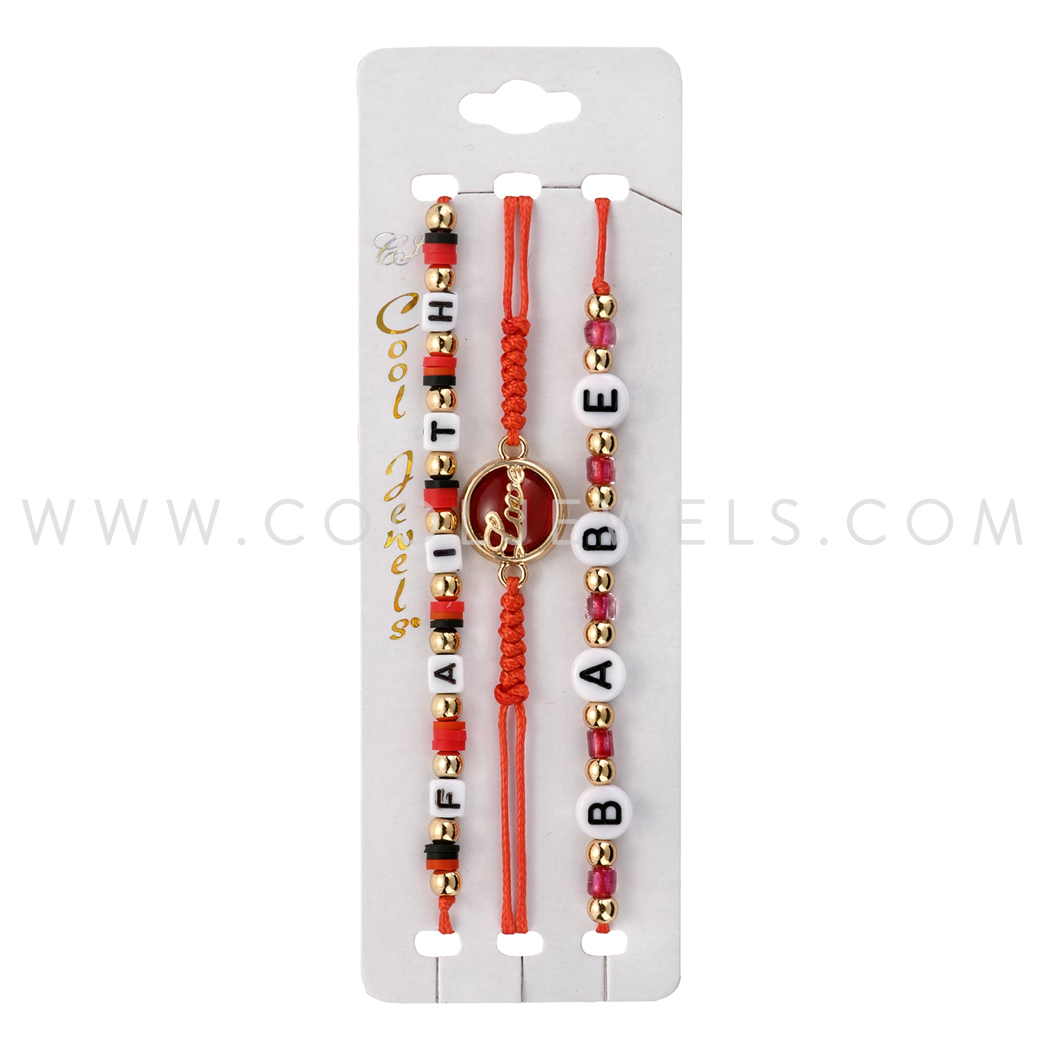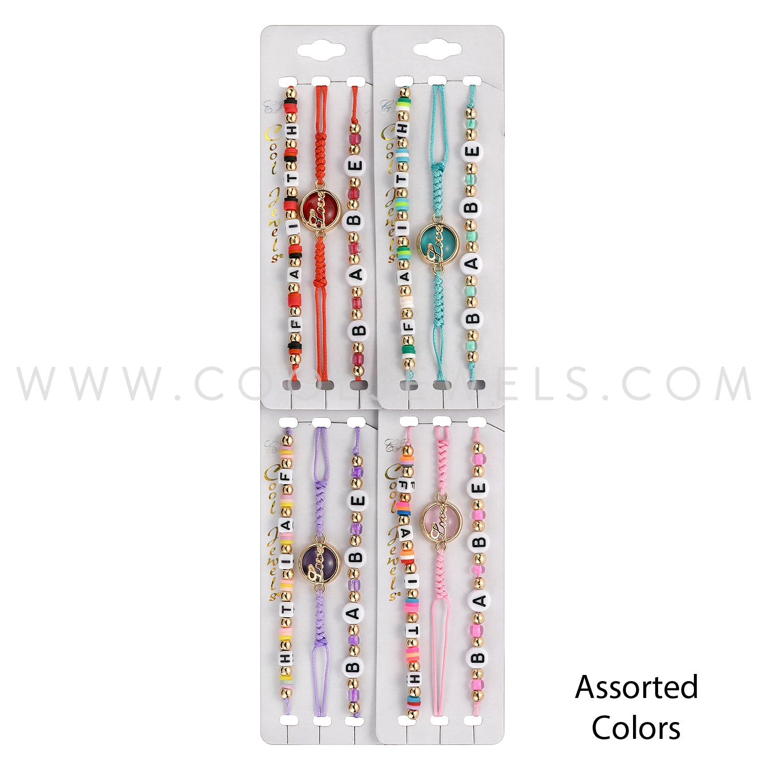 (SET OF 3) STRING BRACELET AN WITH FAITH, LOVE PENDANT, & BABE - ASSORTED