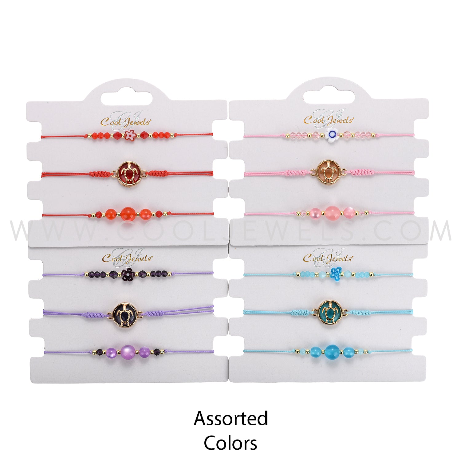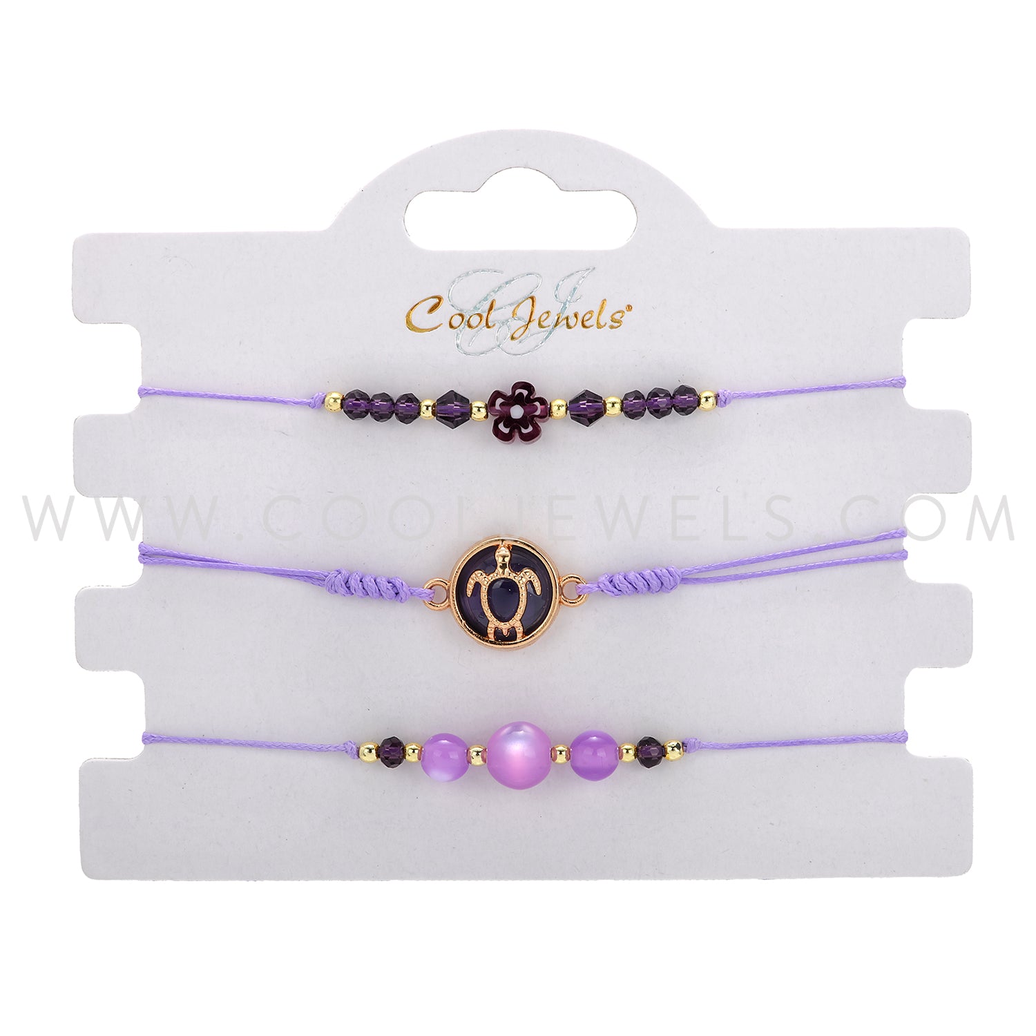 (SET OF 3) STRING BRACELET ANKLET WITH BEADS, FLOWER, & TURTLE PENDANT