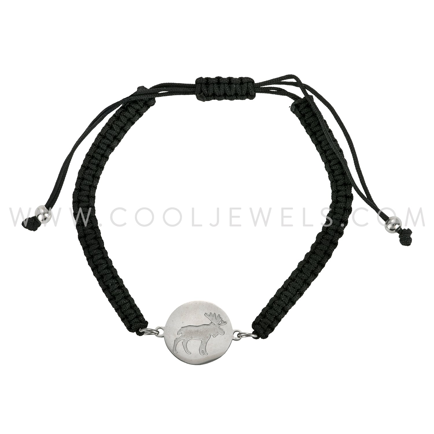 BLACK WOVEN SLIDER CORD BRACELETS WITH ROUND MOOSE PENDANT - CARDED
