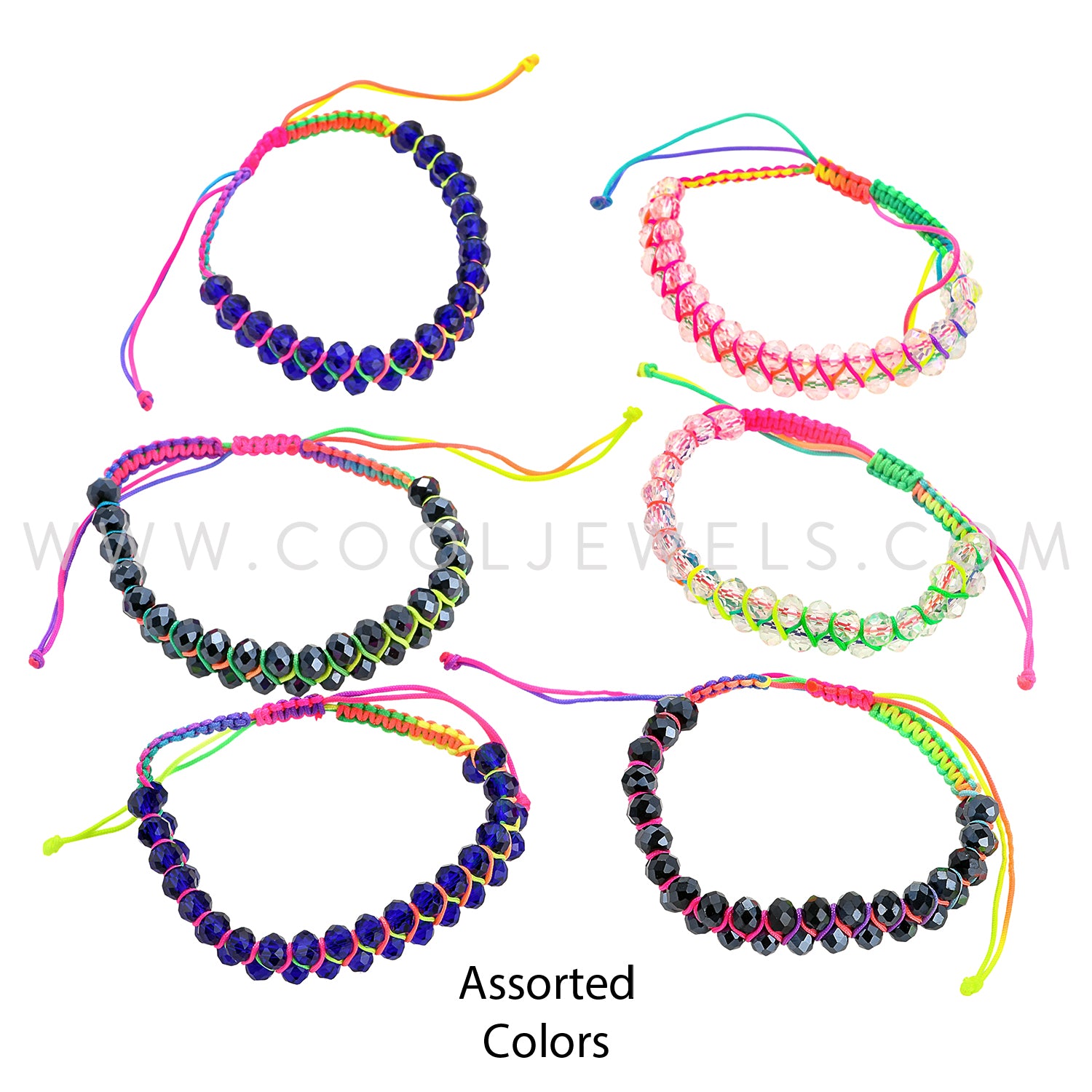 WOVEN BRACELET ANKLET WITH CRYSTAL BEADS - ASSORTED