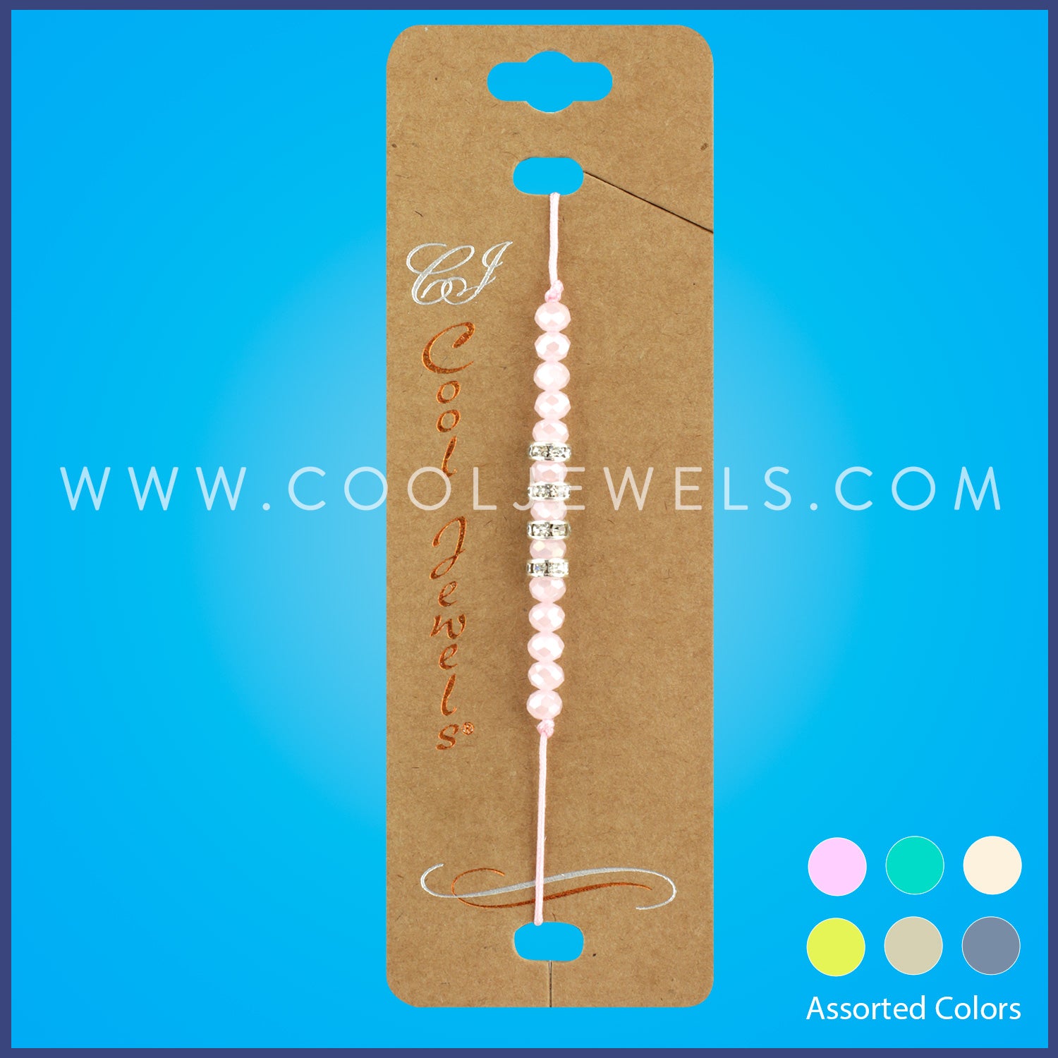 SLIDER CORD BRACELET WITH CRYSTAL & RHINESTONE BEADS