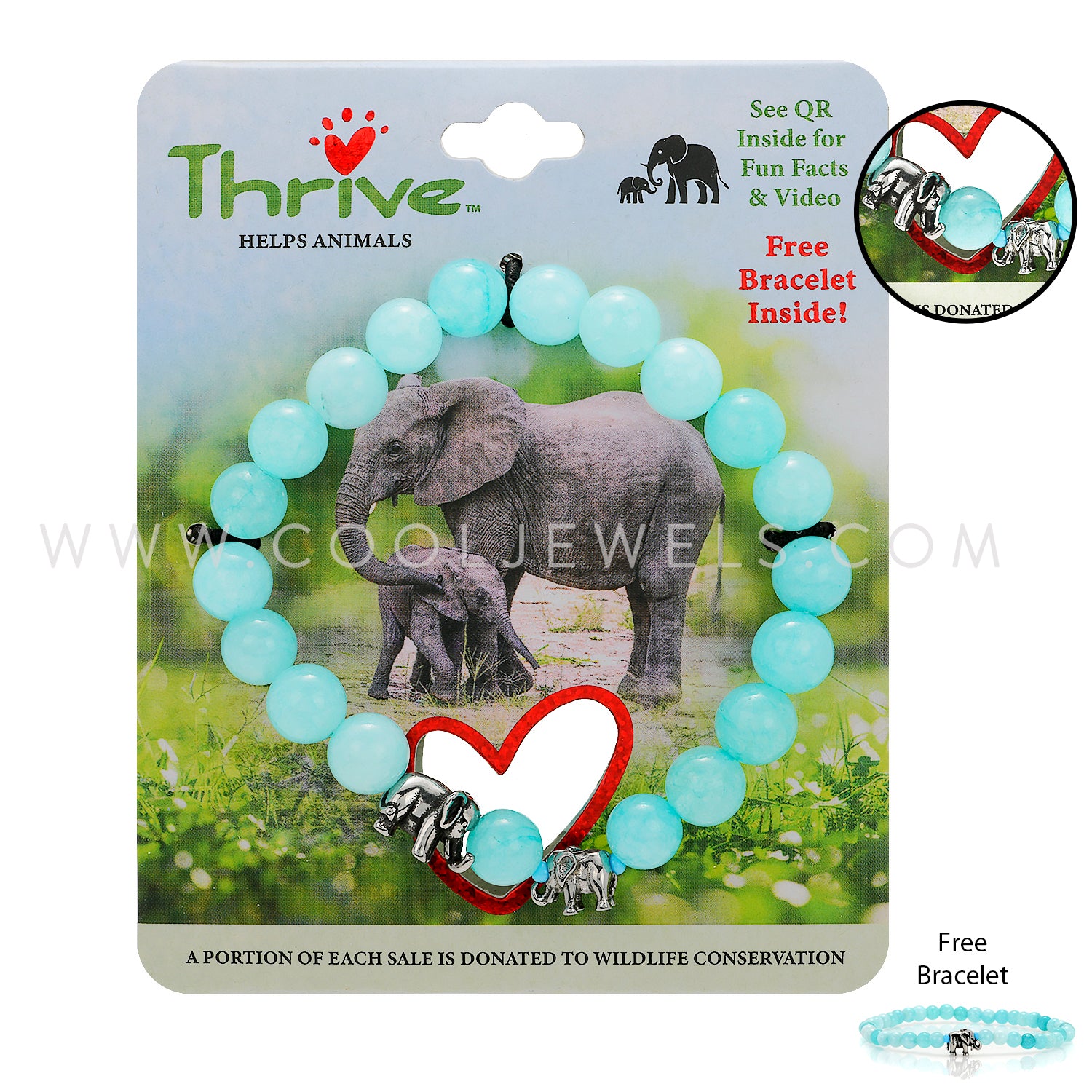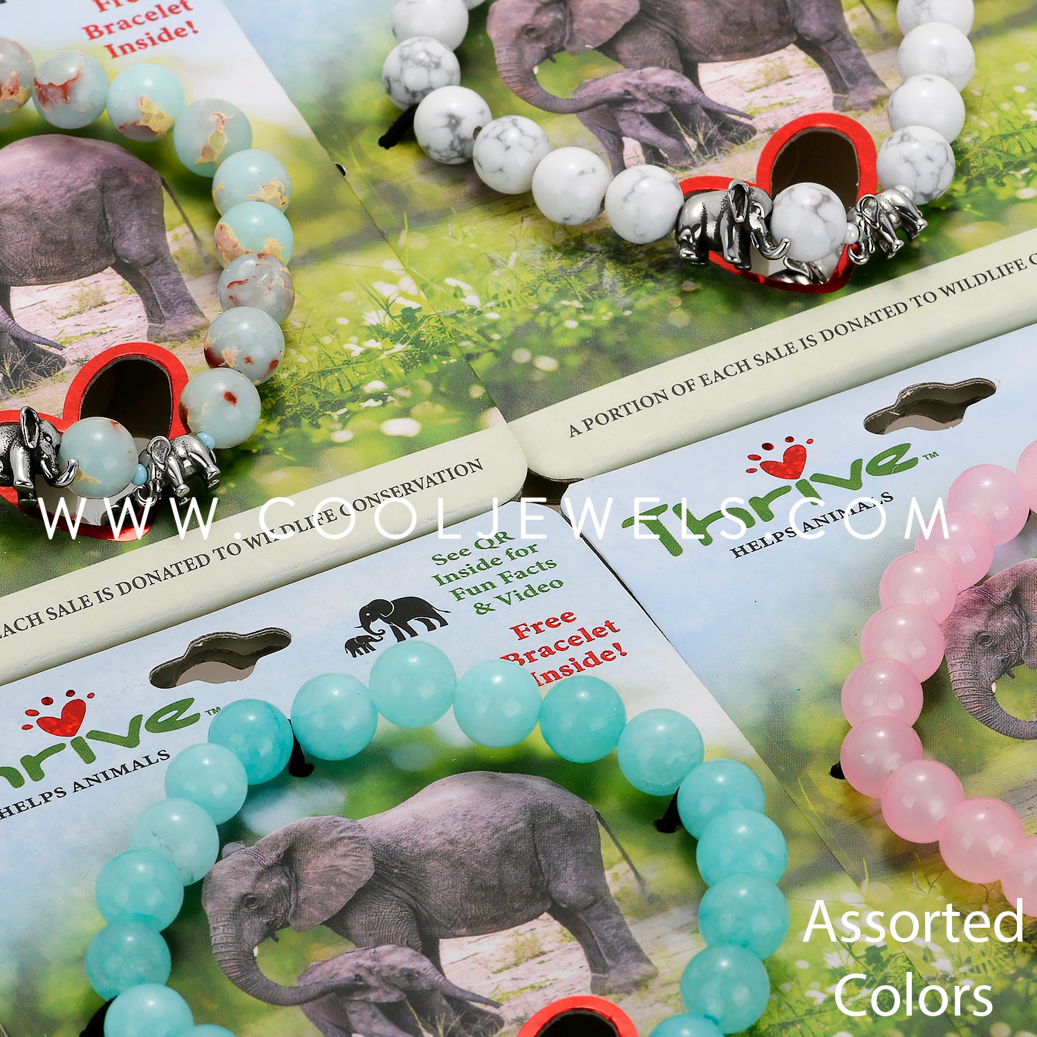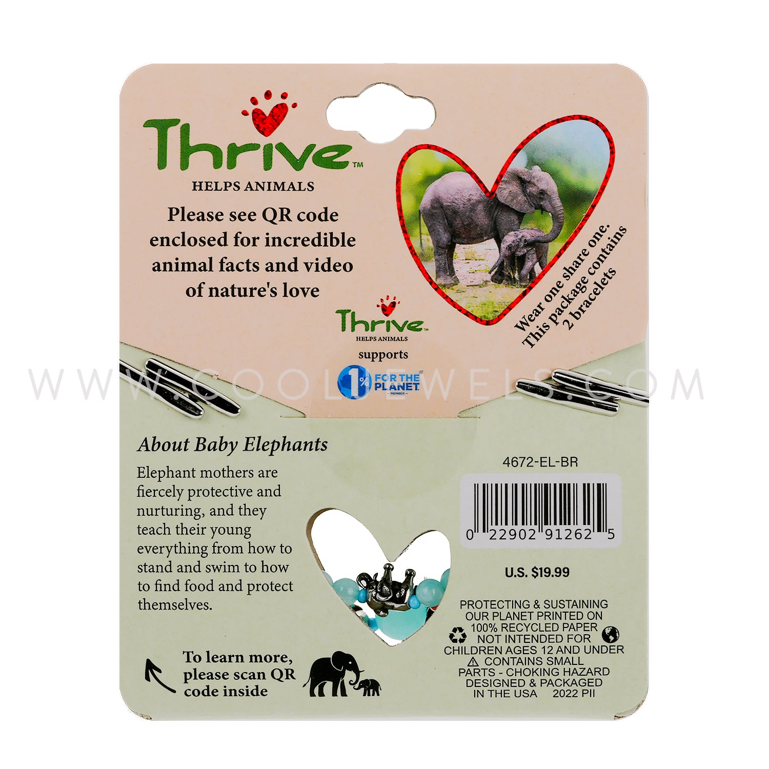 (SET OF 2) THRIVE - DOUBLE ELASTIC STRETCH BRACELETS WITH ELEPHANT ASSORTED - CARDED