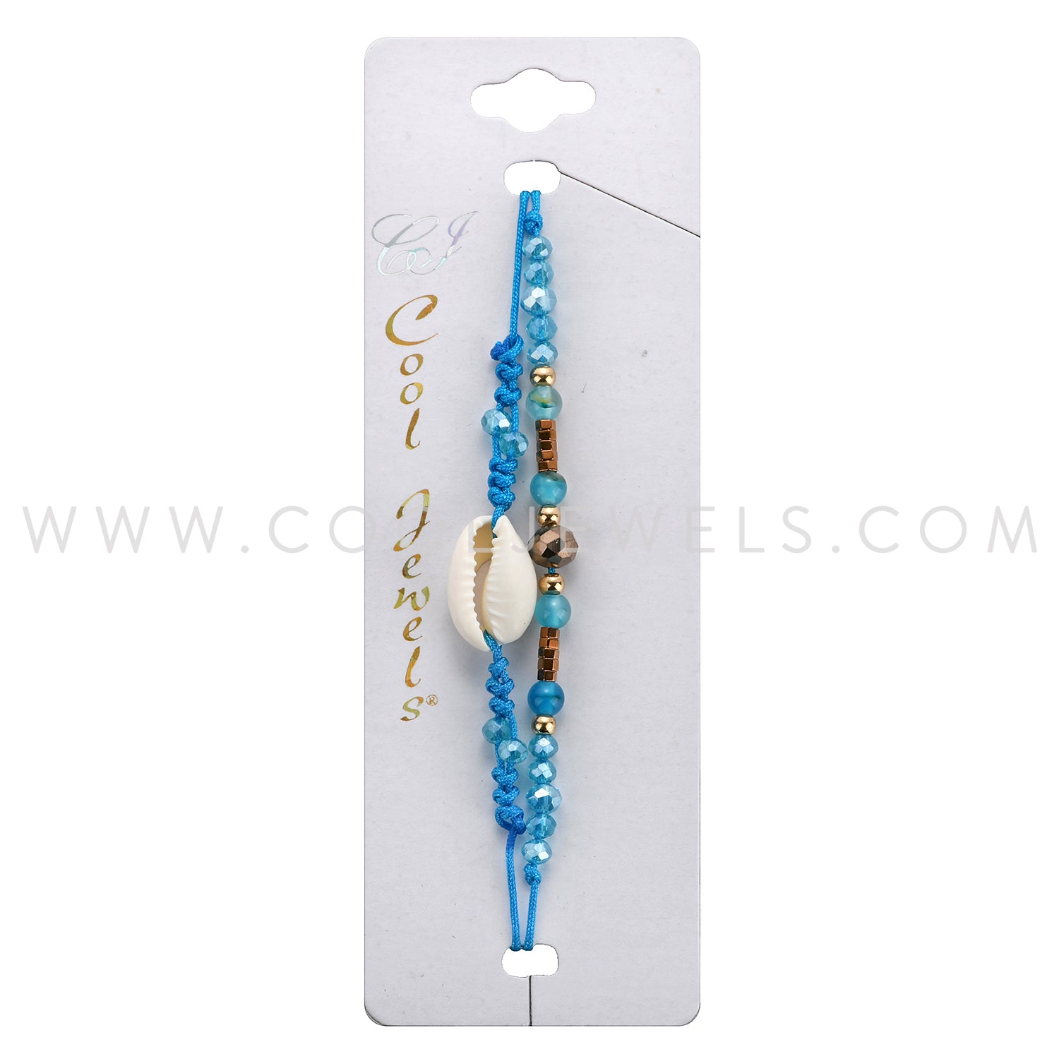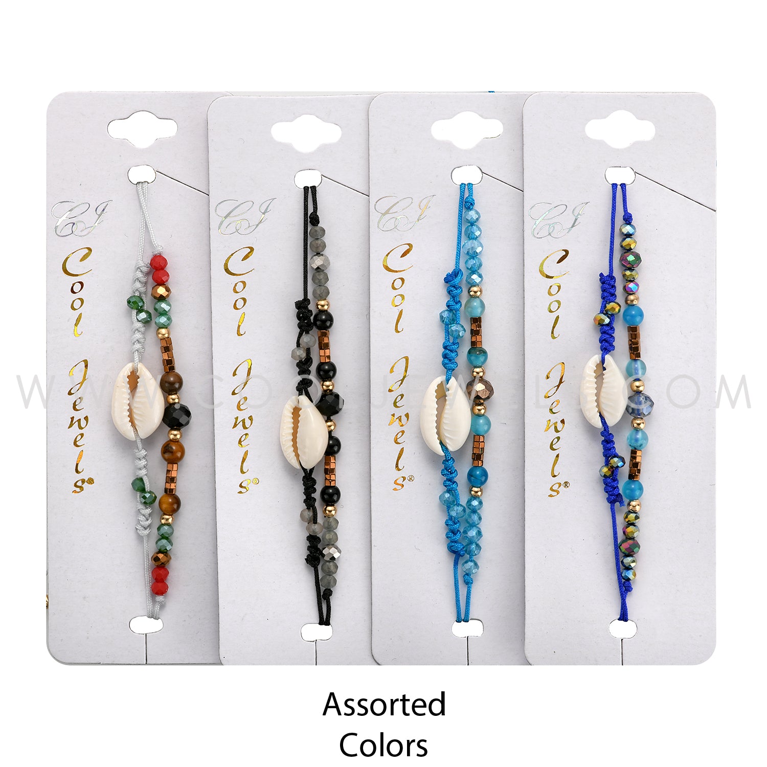 (SET OF 2) SLIDER CORD BRACELET WITH COWRIE SHELL & BEADS