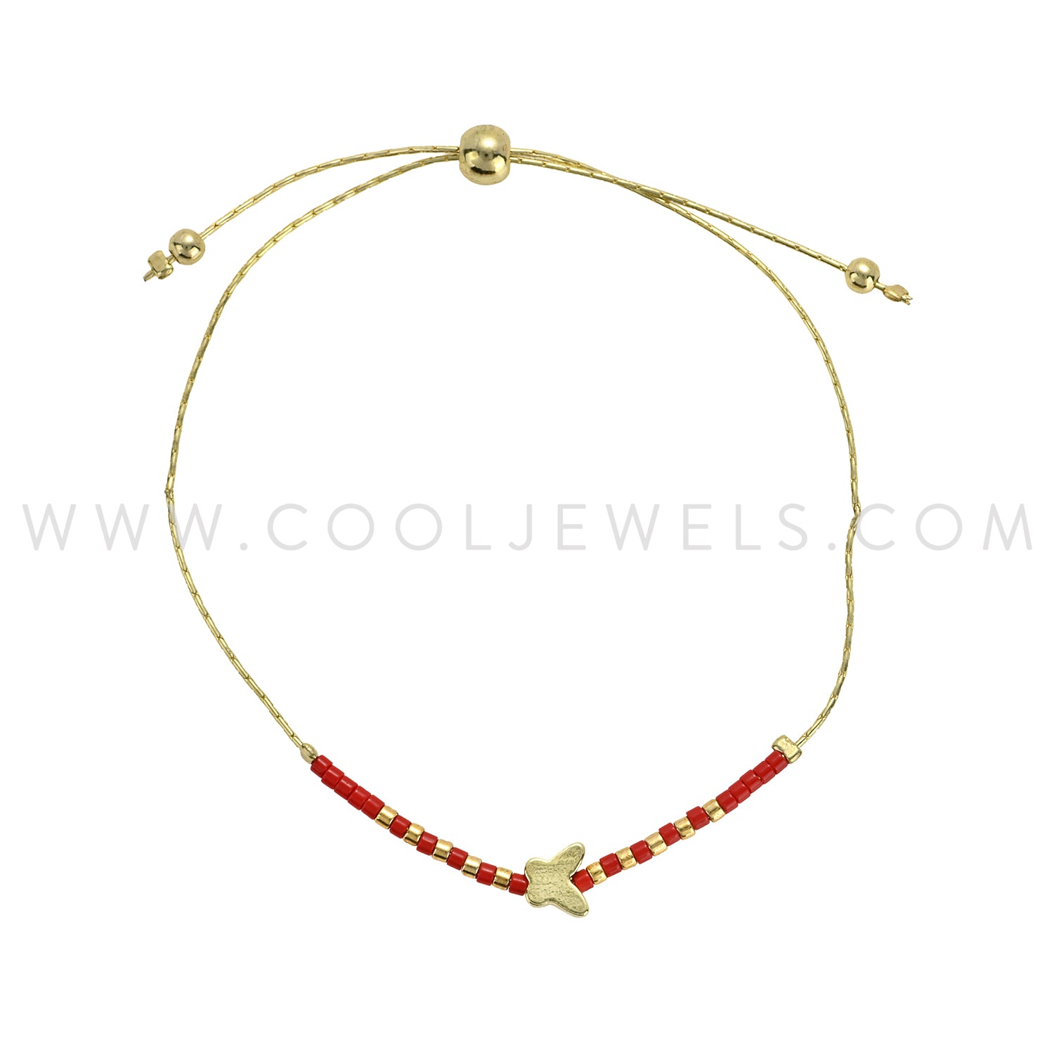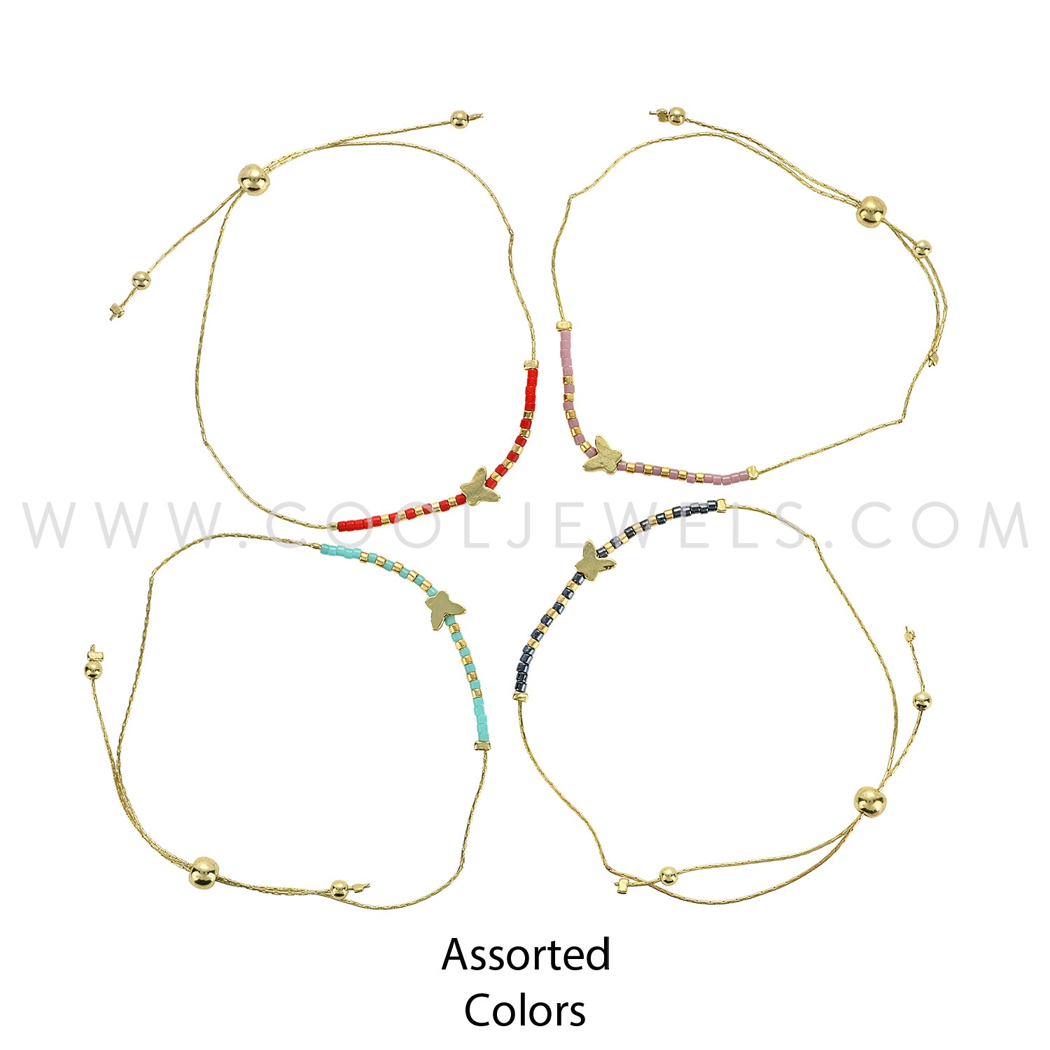 Assorted Butterfly & Colored Beads Gold Slider Bracelet