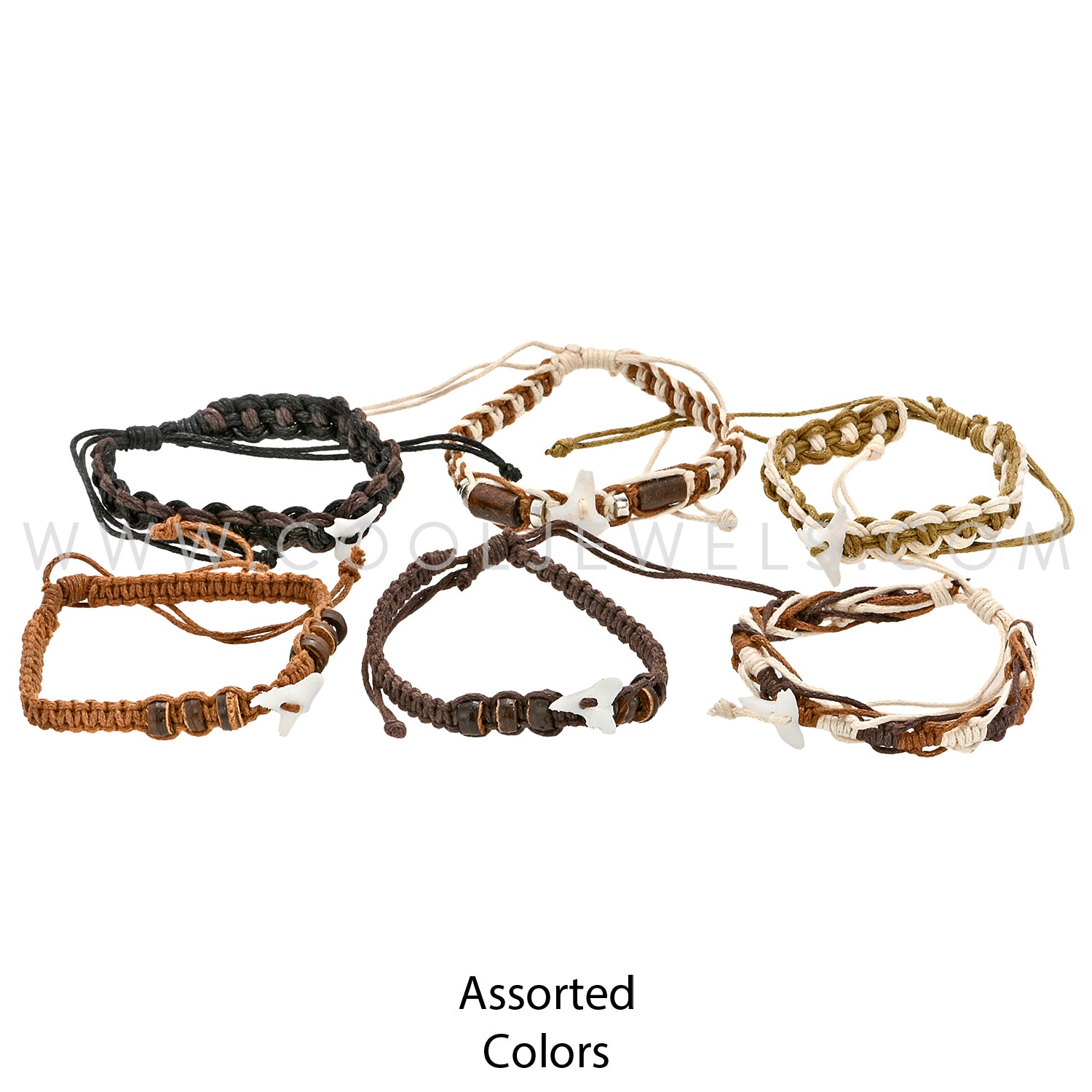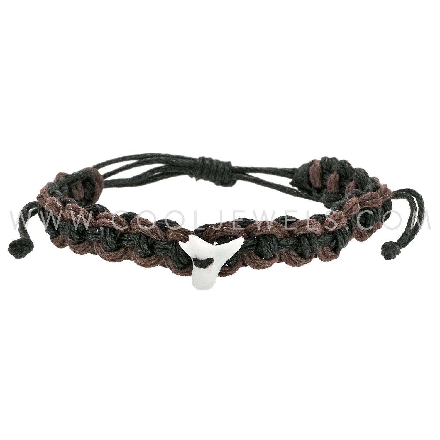 WOVEN SLIDER BRACELET WITH IMITATION SHARK TOOTH - ASSORTED COLORS
