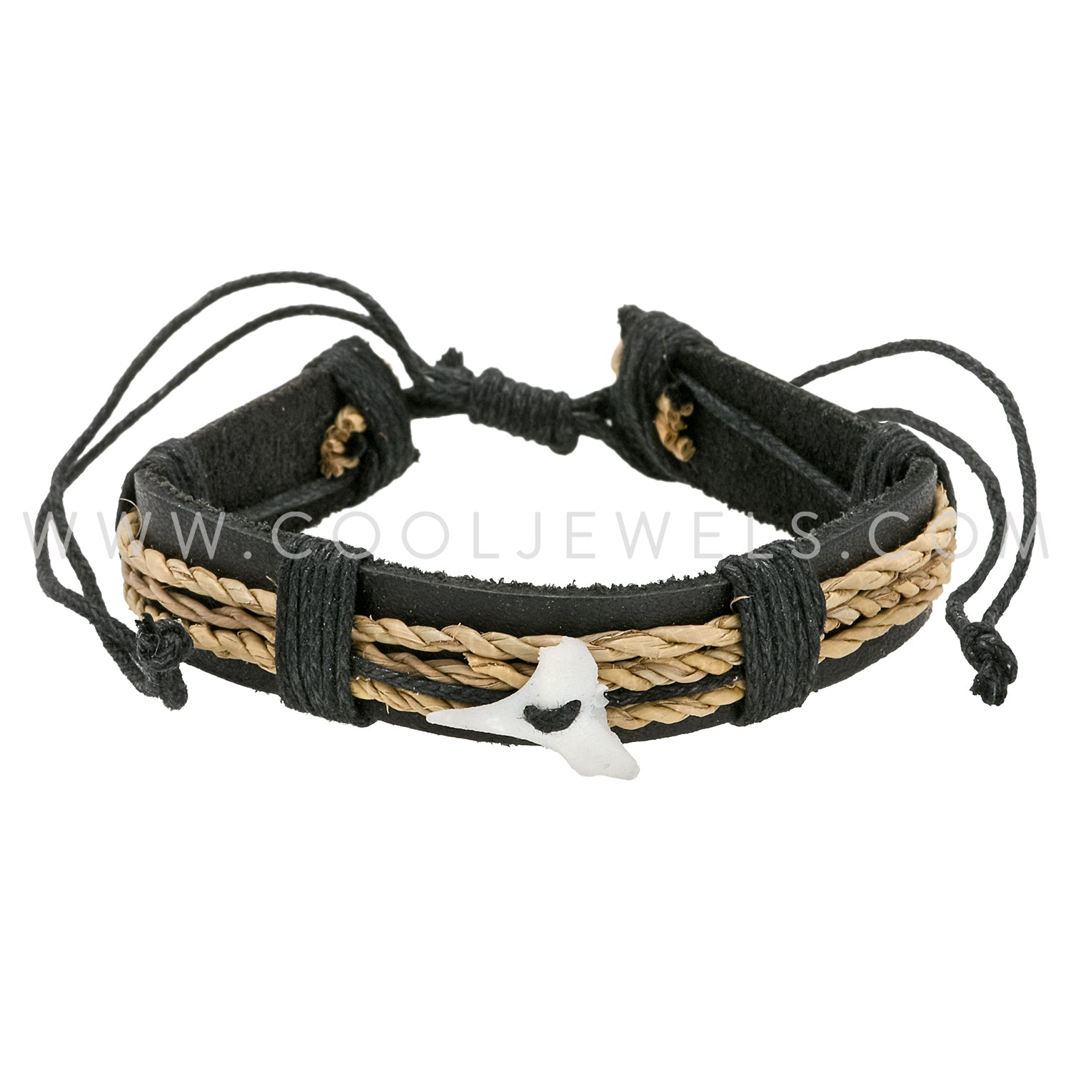 LEATHER SLIDER BRACELET WITH CORD & IMITATION TOOTH - ASSORTED COLORS