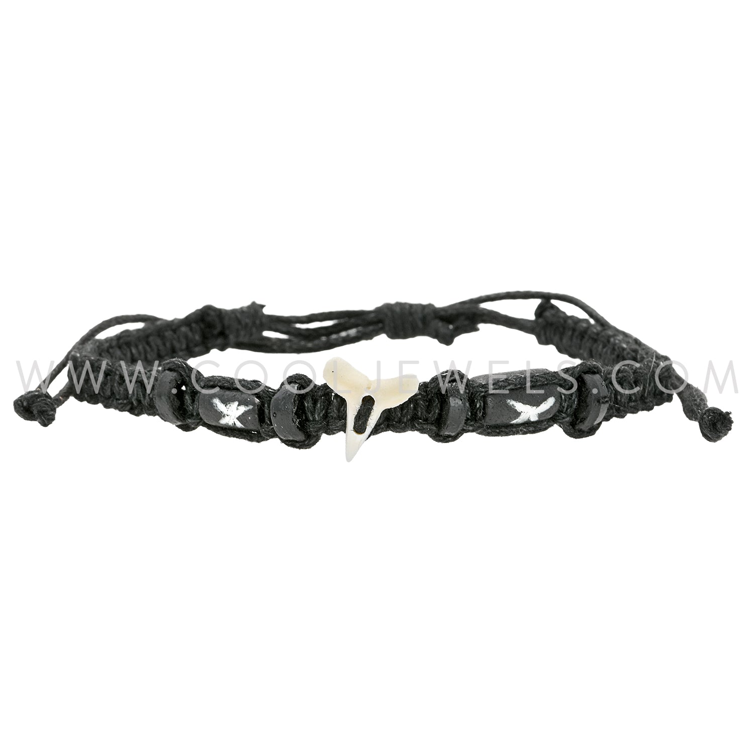 WOVEN SLIDER BRACELET WITH IMITATION SHARK TOOTH & COLORED BEADS - ASSORTED COLORS