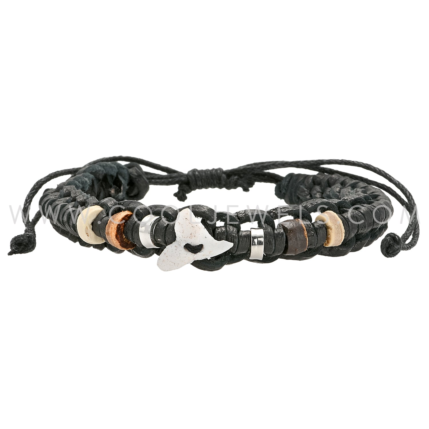 WOVEN SLIDER BRACELET WITH IMITATION SHARK TOOTH & COLORED BEADS - ASSORTED COLORS