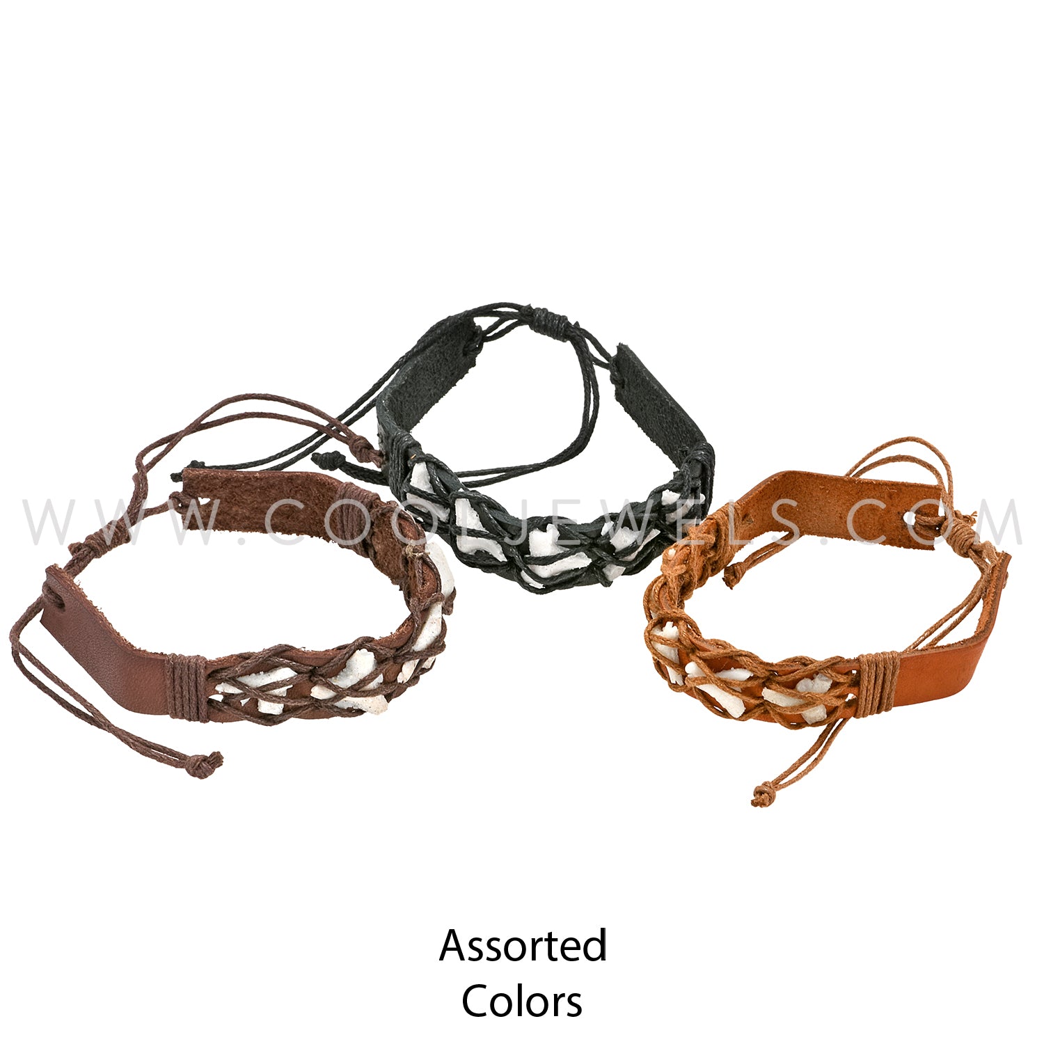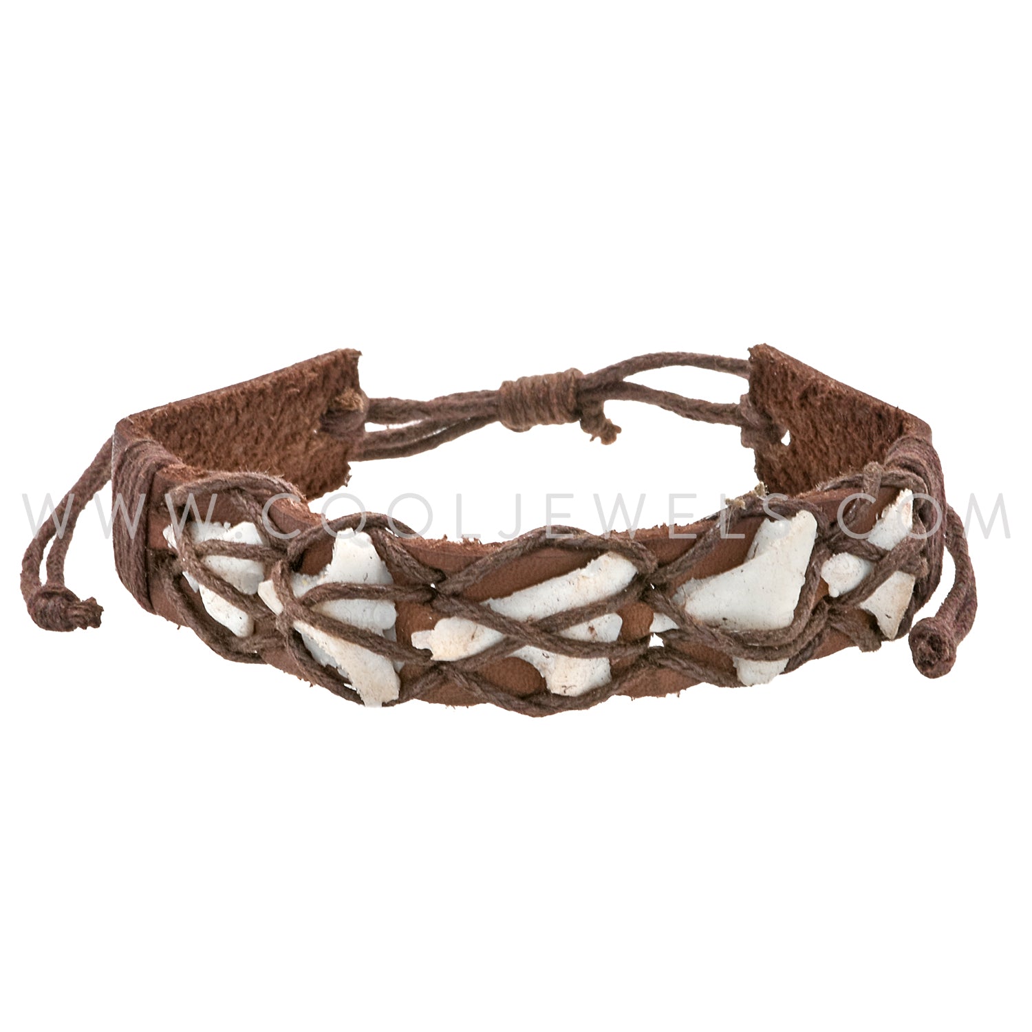 LEATHER SLIDER BRACELET WITH IMITATION SHARK TEETH AND 'X' DESIGN - ASSORTED COLORS