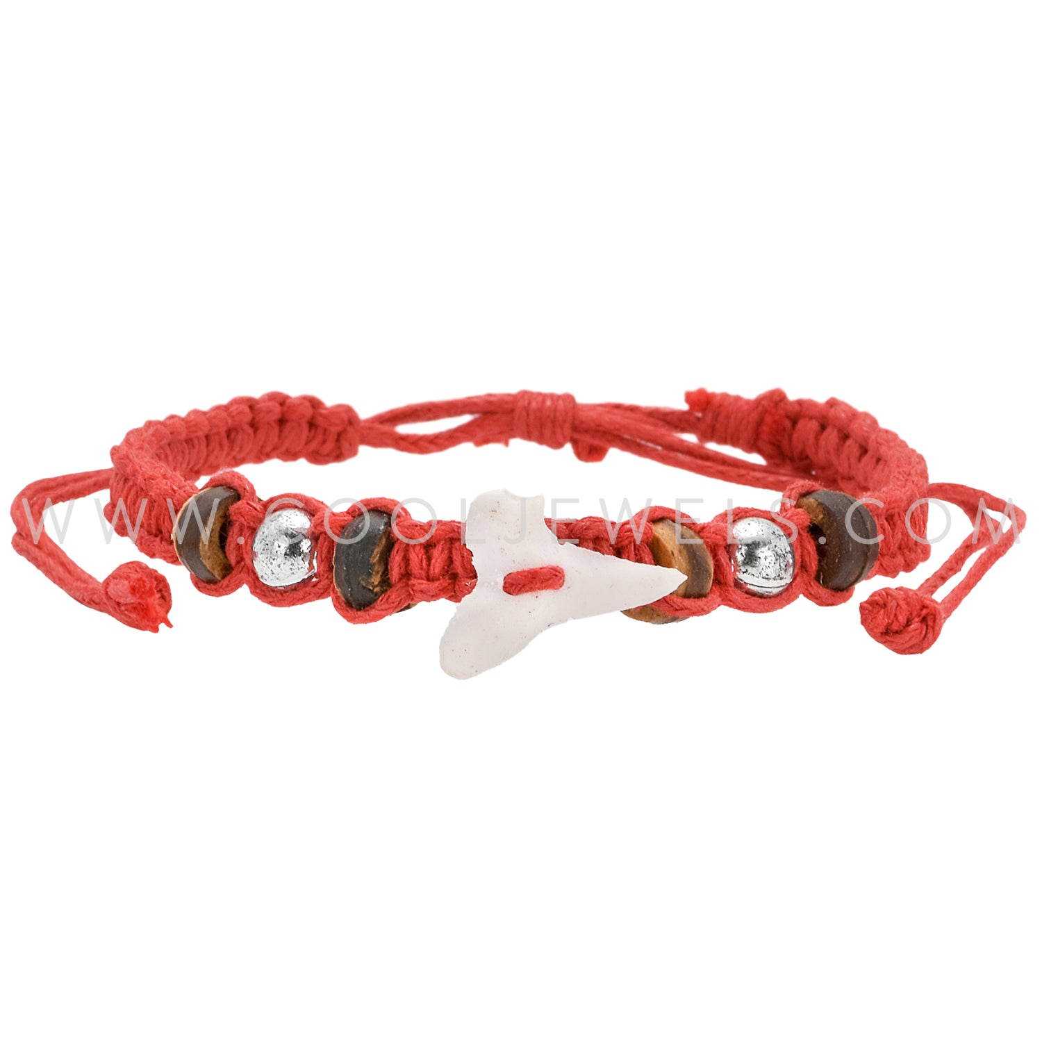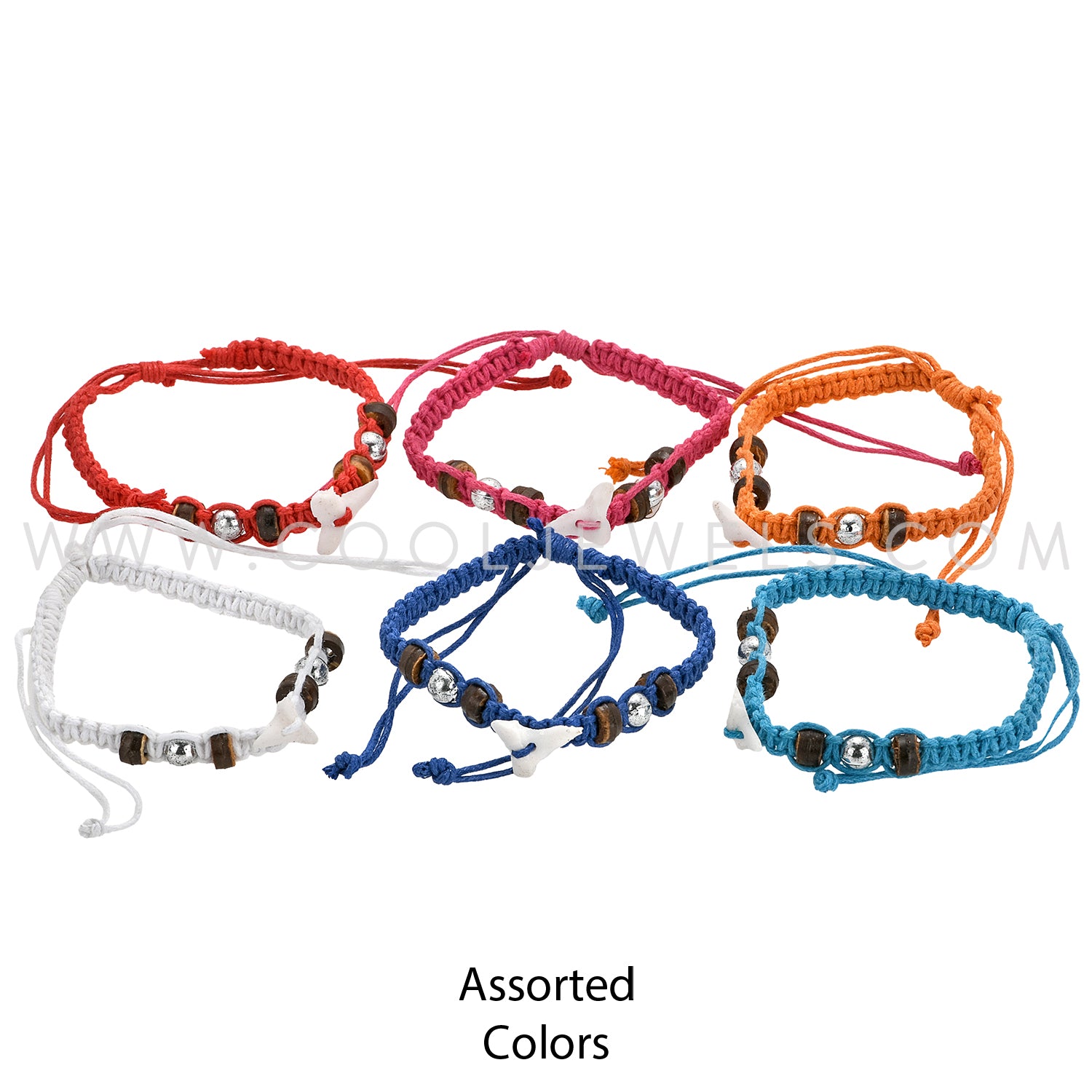 SLIDER BRACELET WITH WOOD & CCB BEADS & IMITATION SHARK TOOTH - ASSORTED COLORS