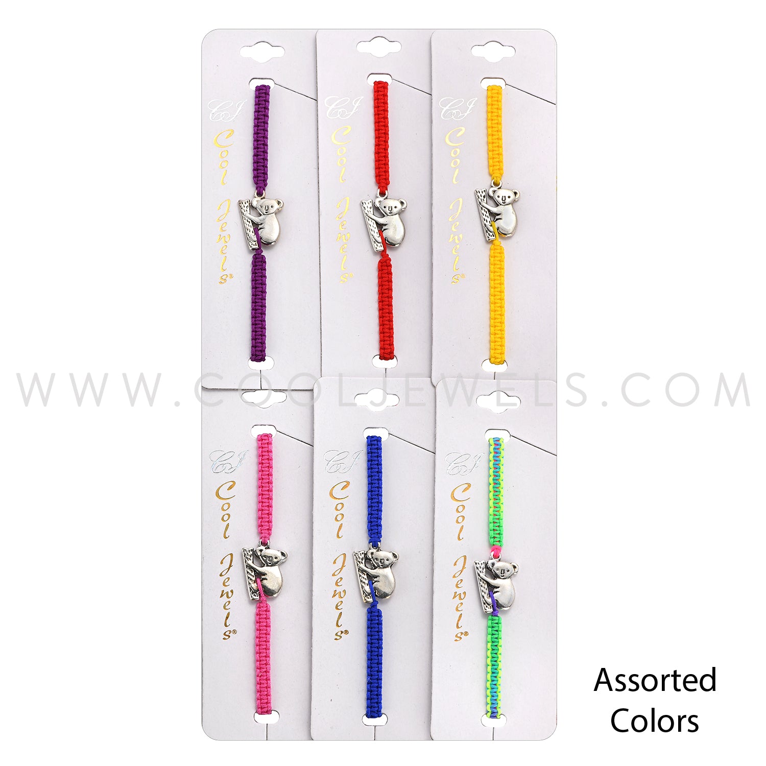 WOVEN SLIDER CORD BRACELET WITH KOALA PENDANT - ASSORTED