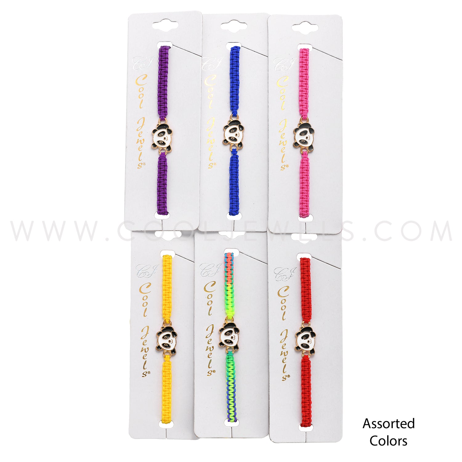 WOVEN SLIDER CORD BRACELET WITH PANDA PENDANT CARDED - ASSORTED