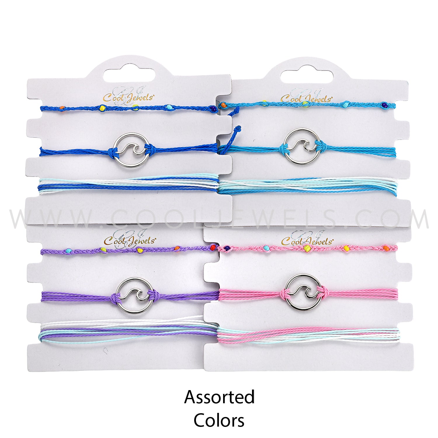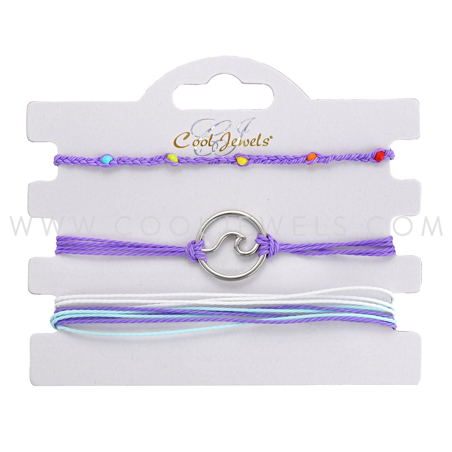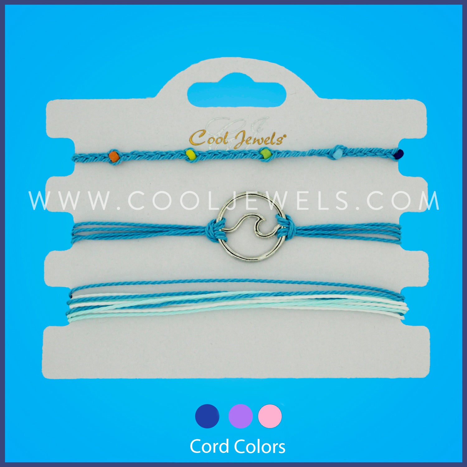 (SET OF 3) SLIDER CORD BRACELETS WITH WAVE PENDANT ASSORTMENT - CARDED