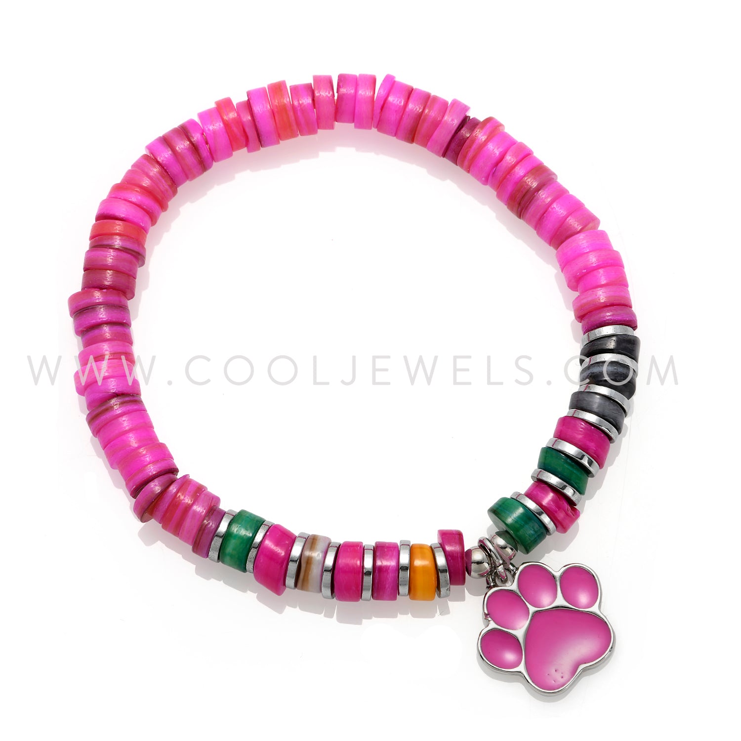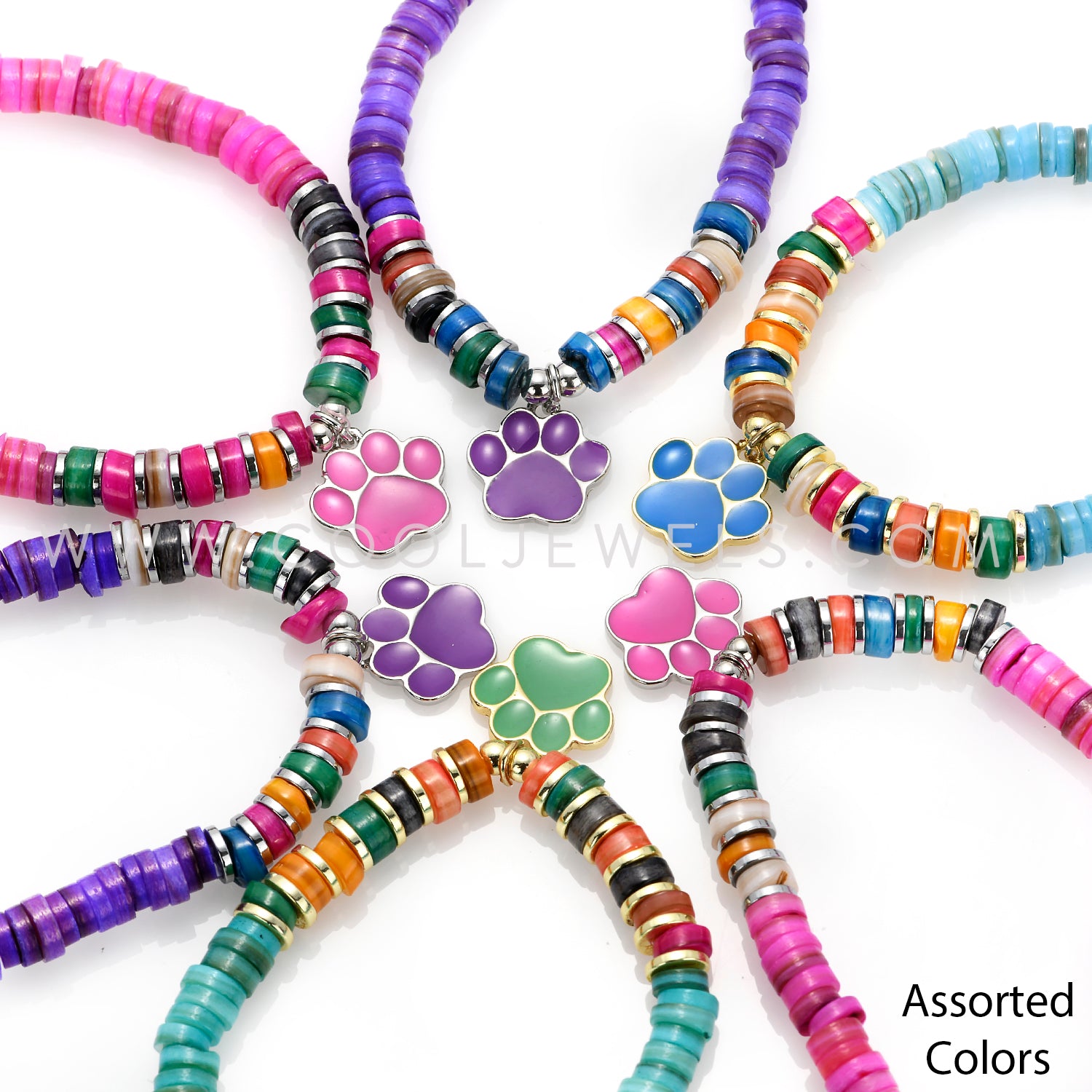 STRETCH HEISHI SHELL BEADED BRACELET WITH BEAR PAW PENDANT - ASSORTED